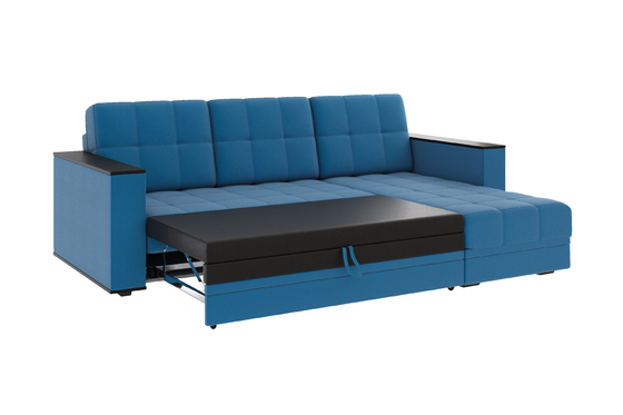 Диван-кровать угловой Тэдди 1504 композиция 2, букле Pique 009 синий, модульная система, сборка на любую сторону