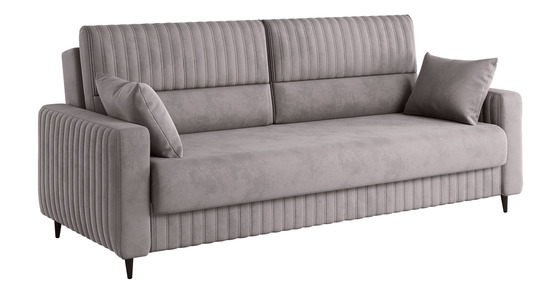 Диван-кровать Мелани Р (120) - компактный современный диванчик. Скругленные подлокотники с кантами подчеркивают эргономичность модели. Простой и надежный механизм трансформации на каждый день обеспечит удобным спальным местом ребенка или подростка. Может использоваться в качестве гостевого спального места для взрослого. Размер сп. места 195 х 120 см, есть небольшой бельевой ящик. Диван выполнен в мягком фактурном велюре. "Пальчиковый эффект" на ткани обивки выражен средне. Опоры - цвет черный, круглые, высота 25 мм., выполнены из высококачественного пластика. Прочность конструкции ножек обеспечена ребрами жесткости и внутренним креплением под фурнитуру.