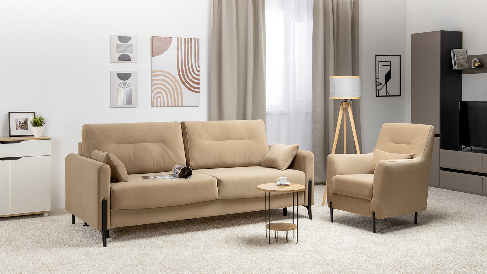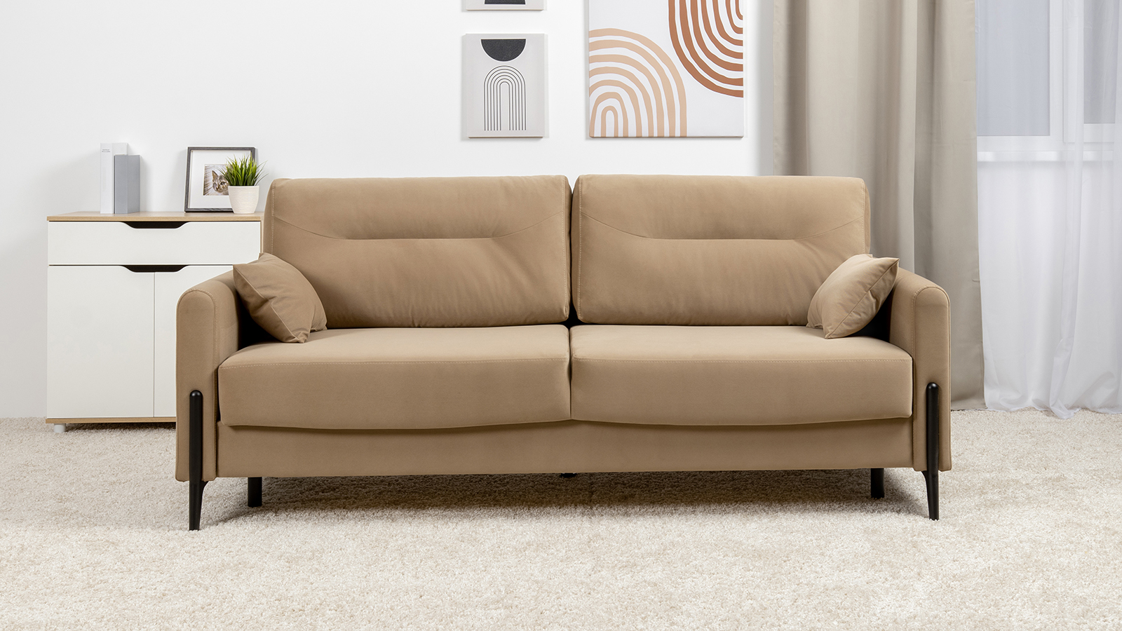 Диван-кровать прямой Барселона ТД 670 велюр Diagonal 290 бежевый