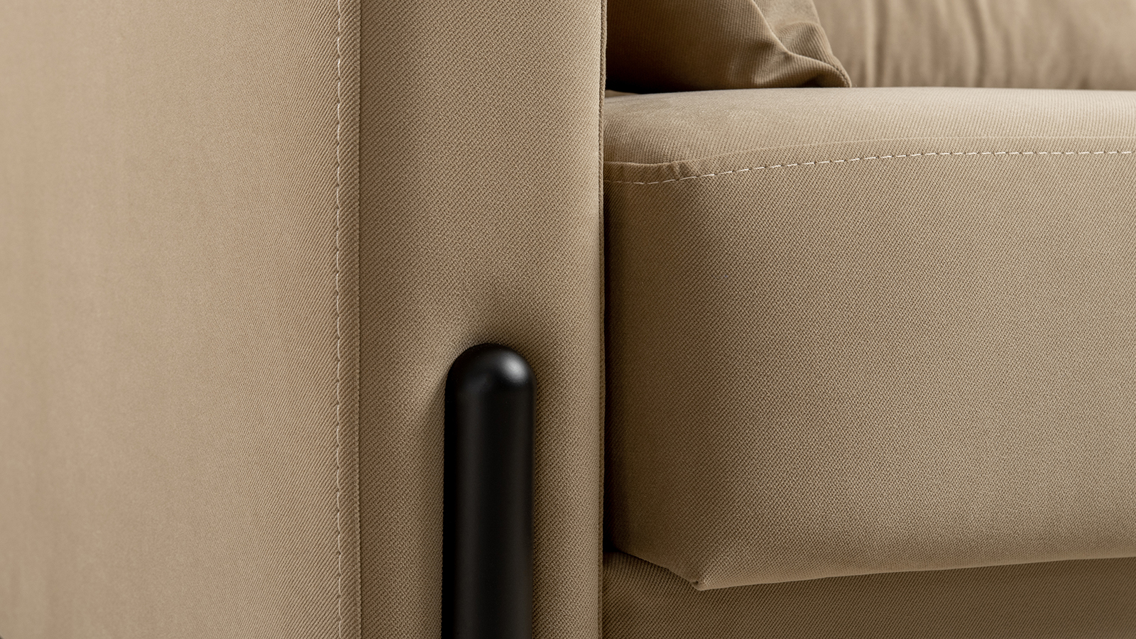 Металлические опоры плавно переходят в декоративный элемент подлокотника. Декоративная утяжка по приспинным подушкам