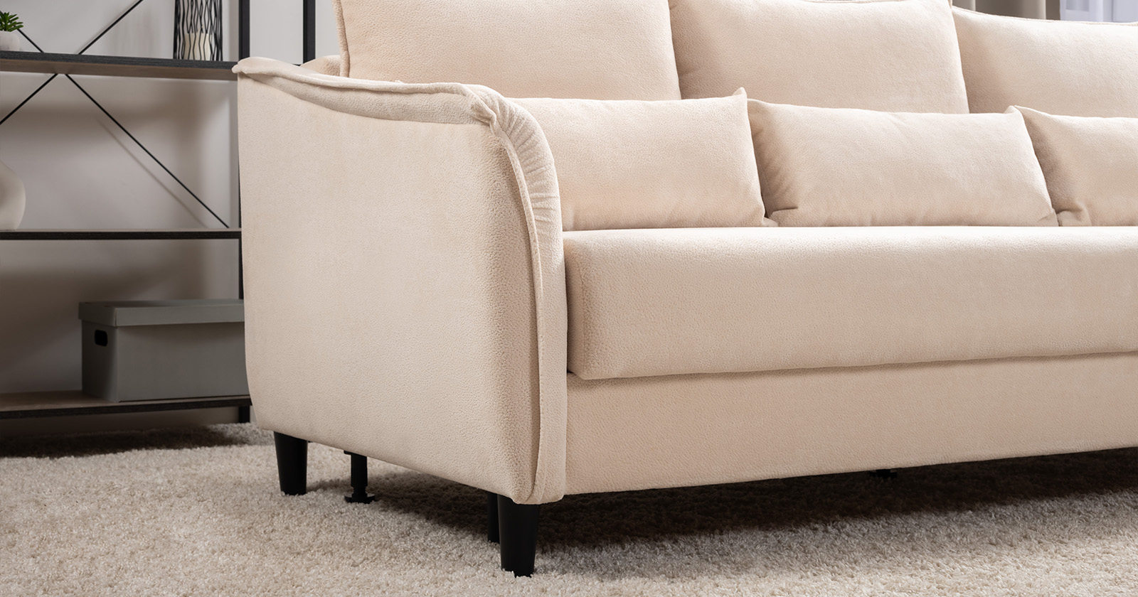 Изогнутые подлокотники в форме лепестков придают коллекции изысканный и элегантный вид, а дополнительные декоративные подушки обеспечат поддержку тела и помогут уютно устроиться на диване. В наполнении дивана используется высокоэластичная пена, которая адаптируется к форме вашего тела и гаранитует максимальный комфорт во время отдыха.