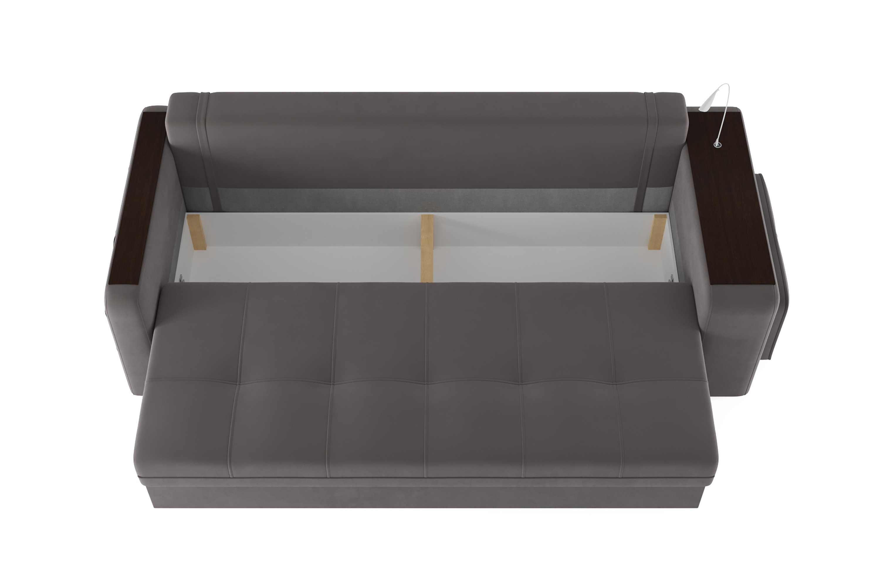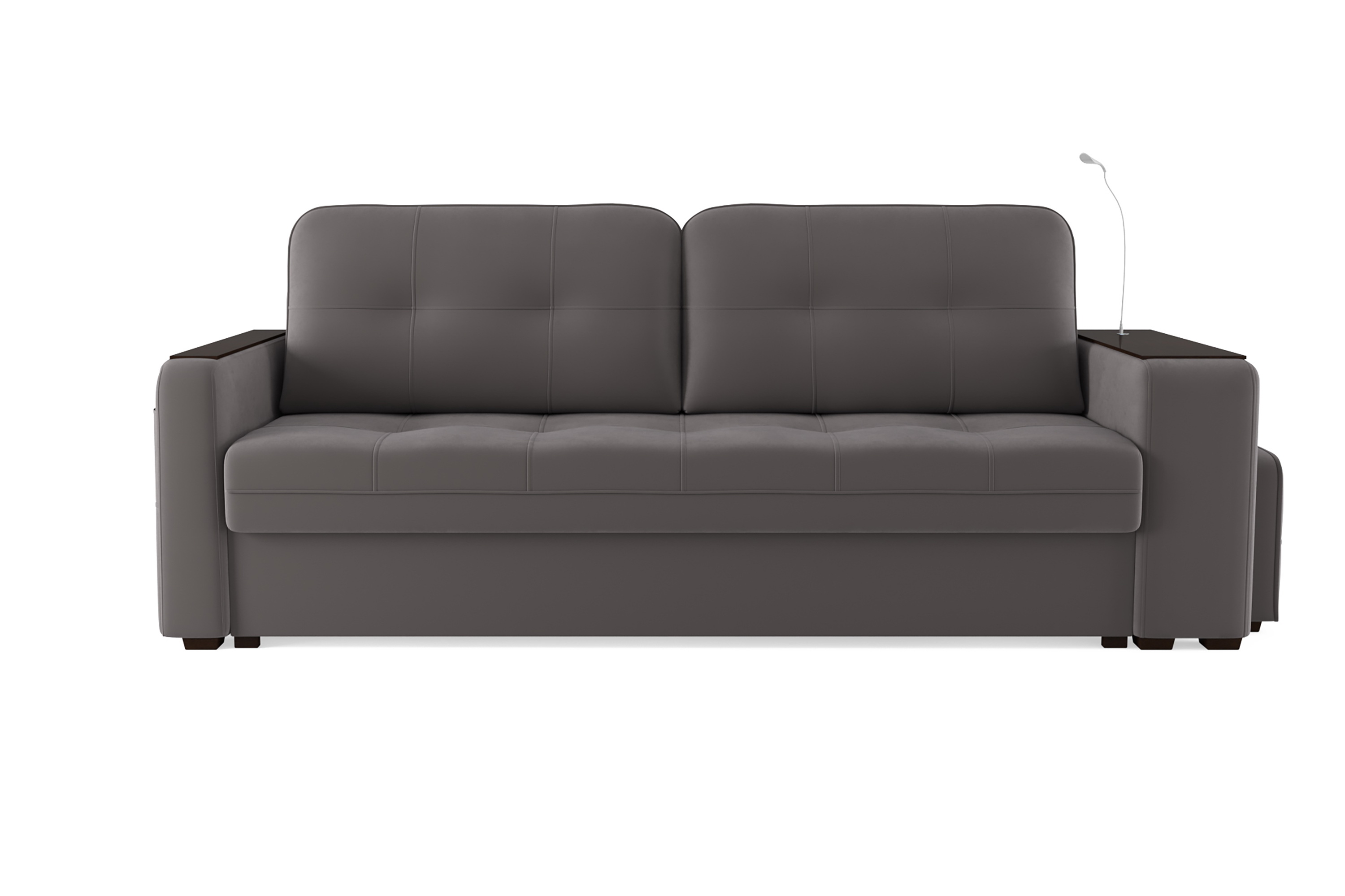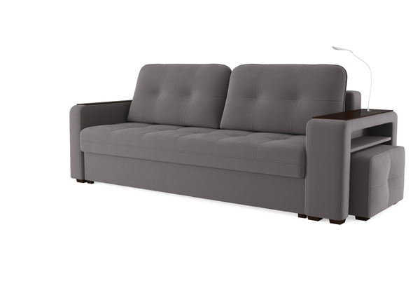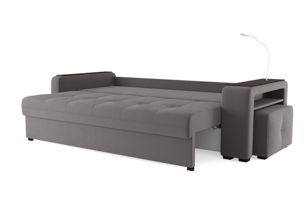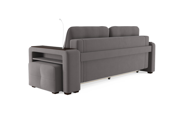 Диван «SMART 4» — это не просто мягкая мебель, а один из ключевых элементов интерьера с обширным функционалом, где эстетика тесно соседствует с комфортом и эргономичностью.  Одна боковина оснащена карманом для хранения мелочей и гаджетов, другая боковина совмещает одновременно: рабочую поверхность, за счет широкой накладки, двойной  usb - порт  и портативную лампу точечного света, которая входит в комплект. Добавить контрастных деталей в интерьер поможет пуф, интегрированный в подлокотник. Этот вариант для современных людей, которые ценят комфорт и удобство отдыха. Мягкое сиденье с легкостью трансформируется в просторное спальное место, на котором смогут утроиться ваши гости. Стильный и уютный, он станет отличным решением, если вы ищите не только красоту, но и комфорт.