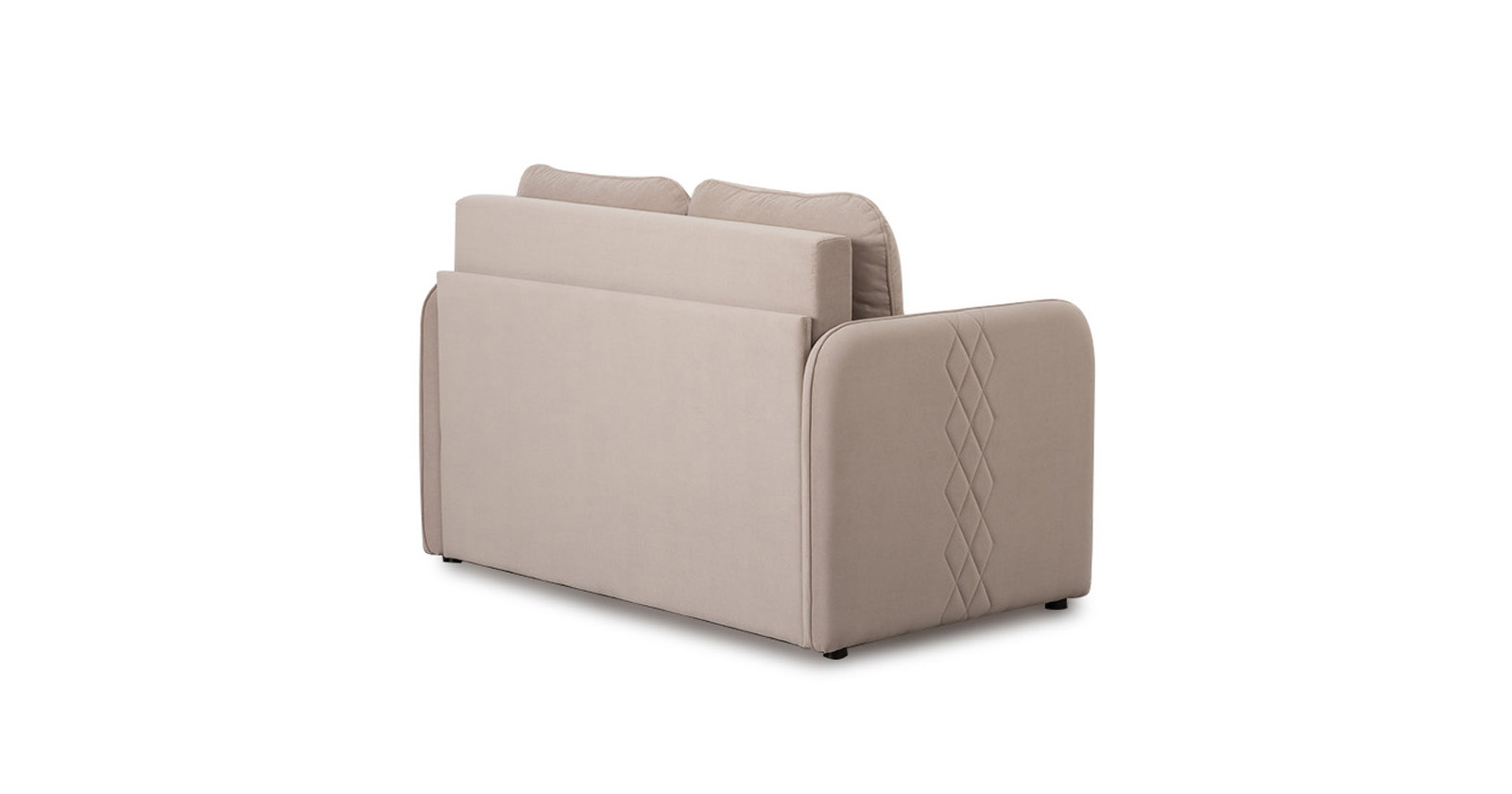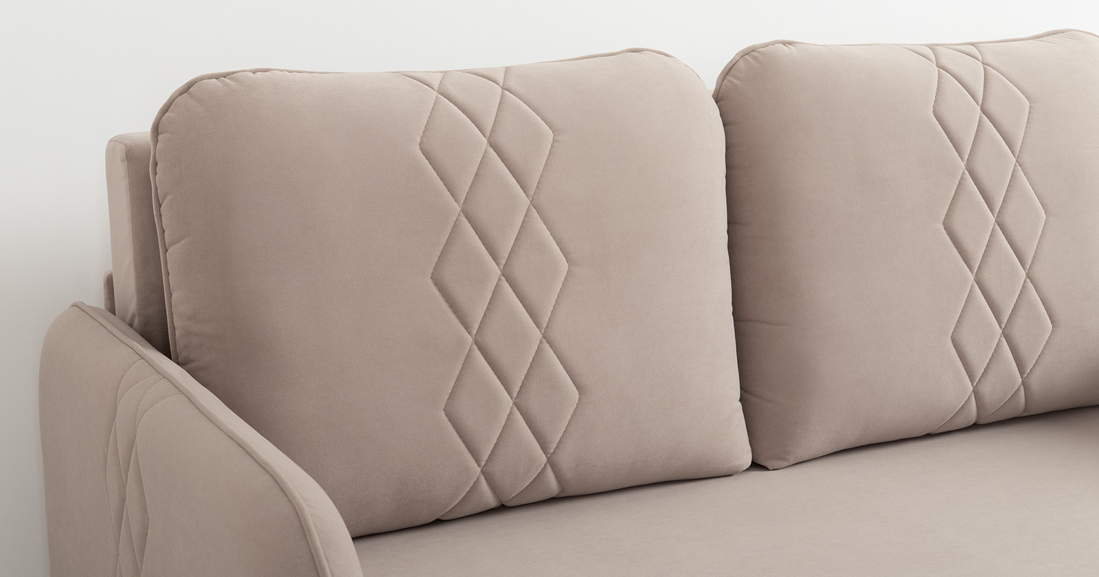 Стильный компактный диван для детской и гостиной. При своих скромных размерах он трансформируется в полноценное спальное место для детей и подростков. Лаконичный дизайн в виде декоративной стежки подчеркивает фактуру велюра, а небольшие размеры позволят разместить его в любом пространстве.