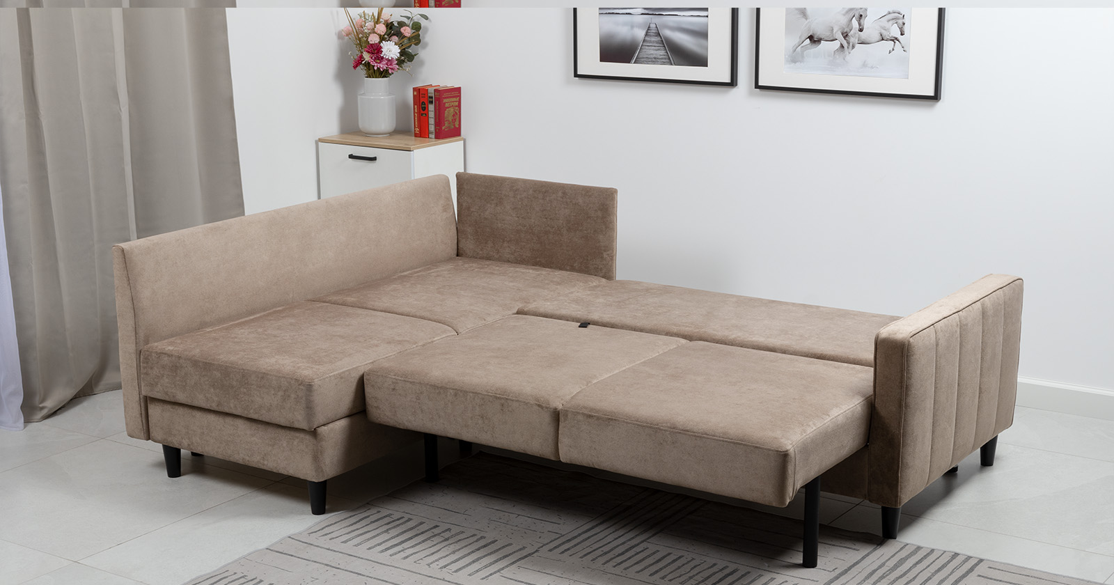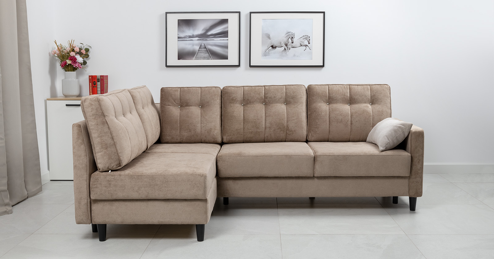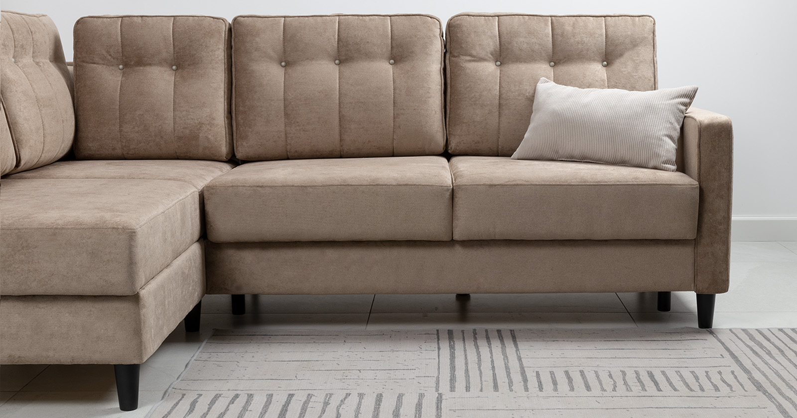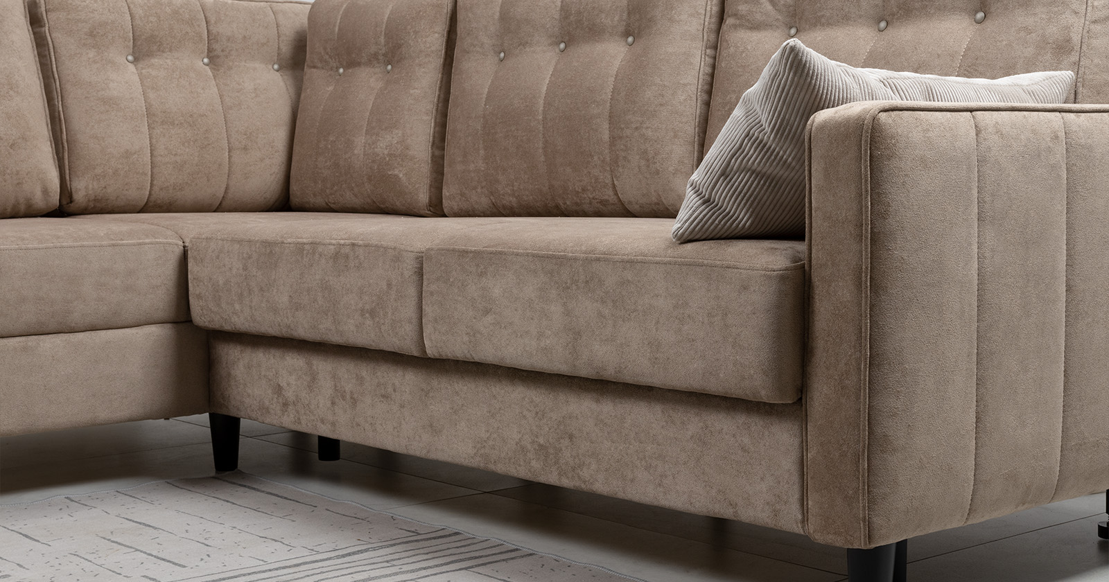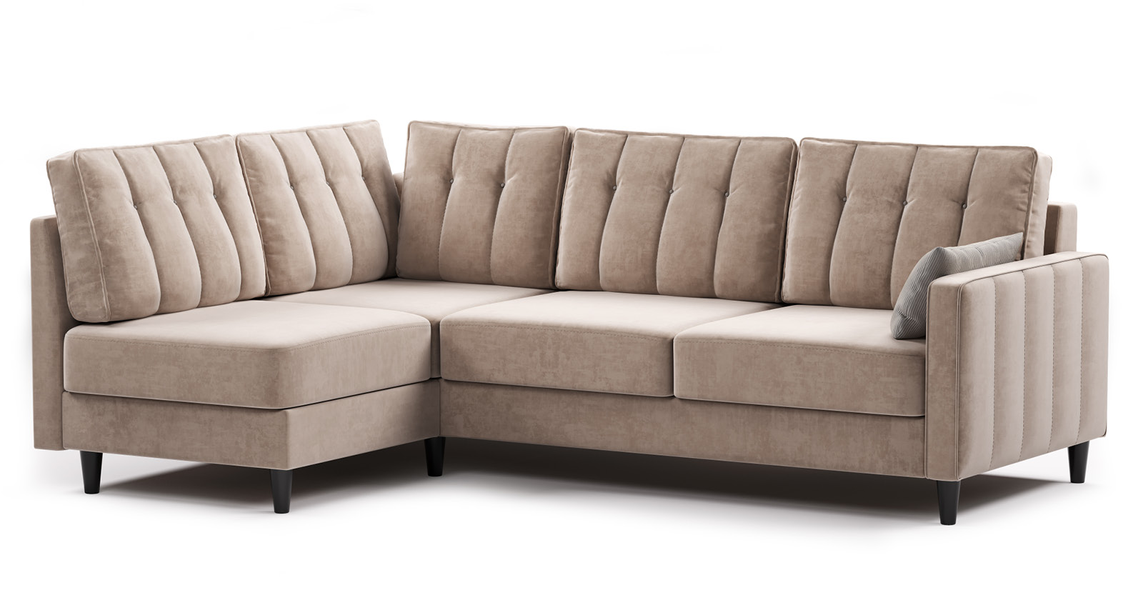 Диван-кровать угловой Арно ТД 565 велюр Лаки 04 песочный, Vertical 910 молочно-серый, сборка на любую сторону