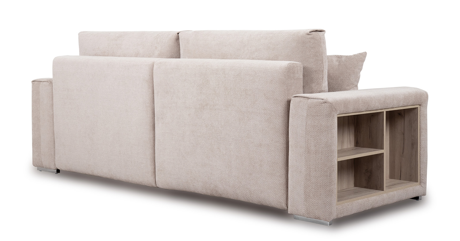 «Компоновка 1» арт. 710 состоит из: оттоманки арт. ТО 710, дивана арт. ТД 710, широкого подлокотника арт. ТБ 710, широкого подлокотника с ящиком арт. ТБ 710, двух приспинных подушек арт. 710 и двух декоративных подушек арт. 710.