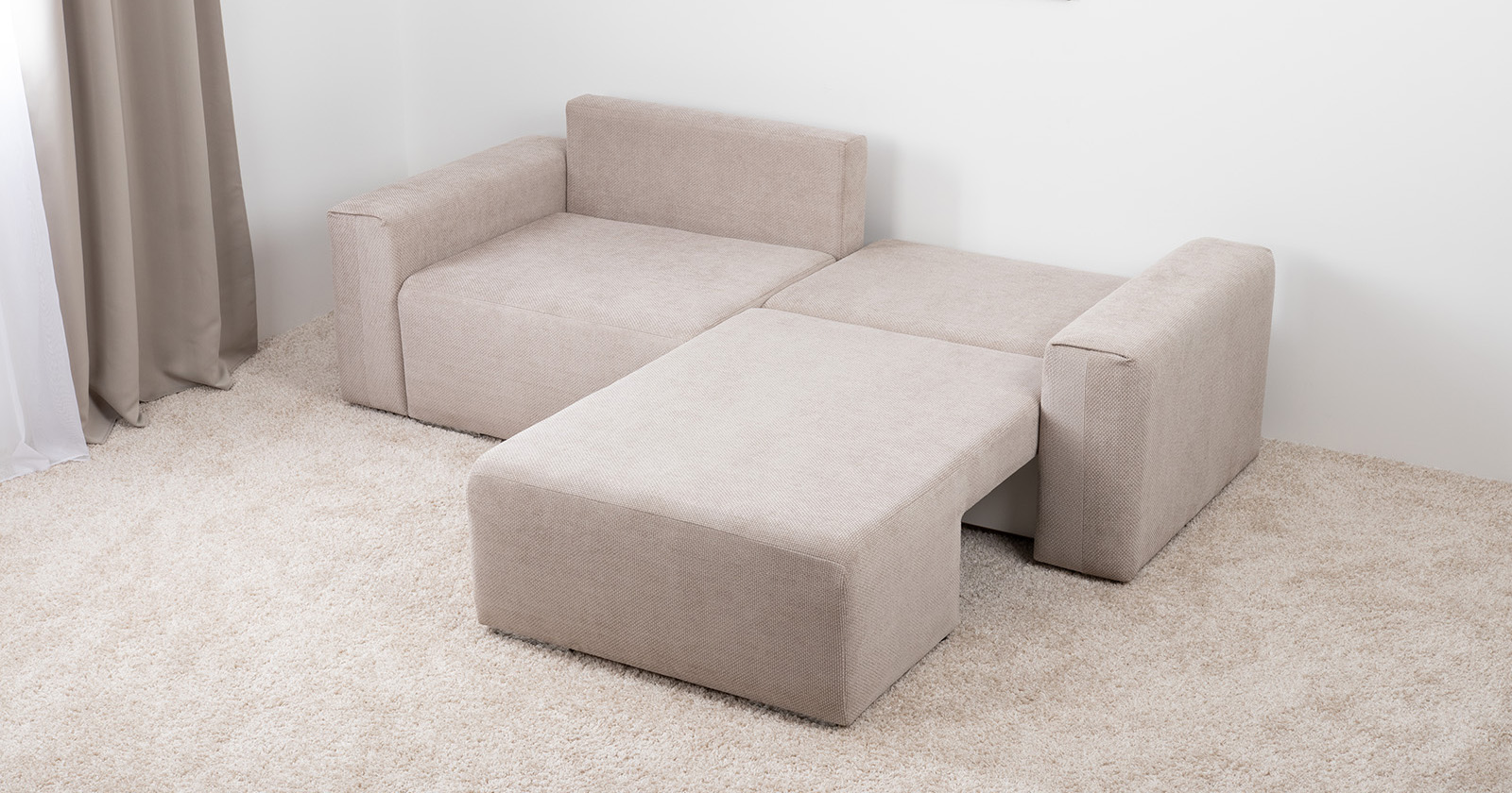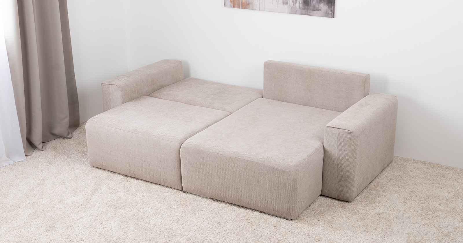 Диван-кровать угловой Оксфорд 710 композиция 1, шенилл Muza 04 светло-бежевый, модульная система, сборка на любую сторону