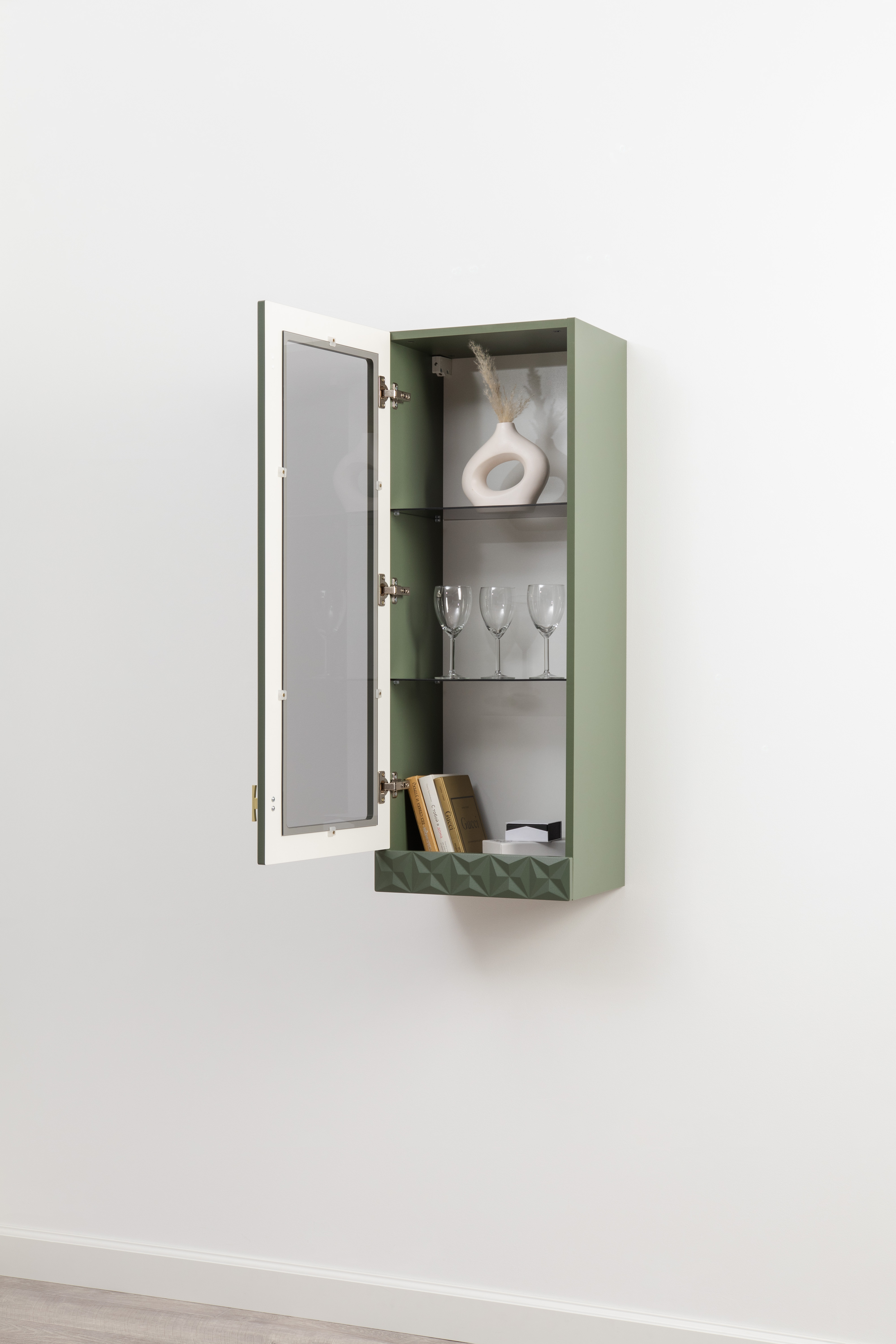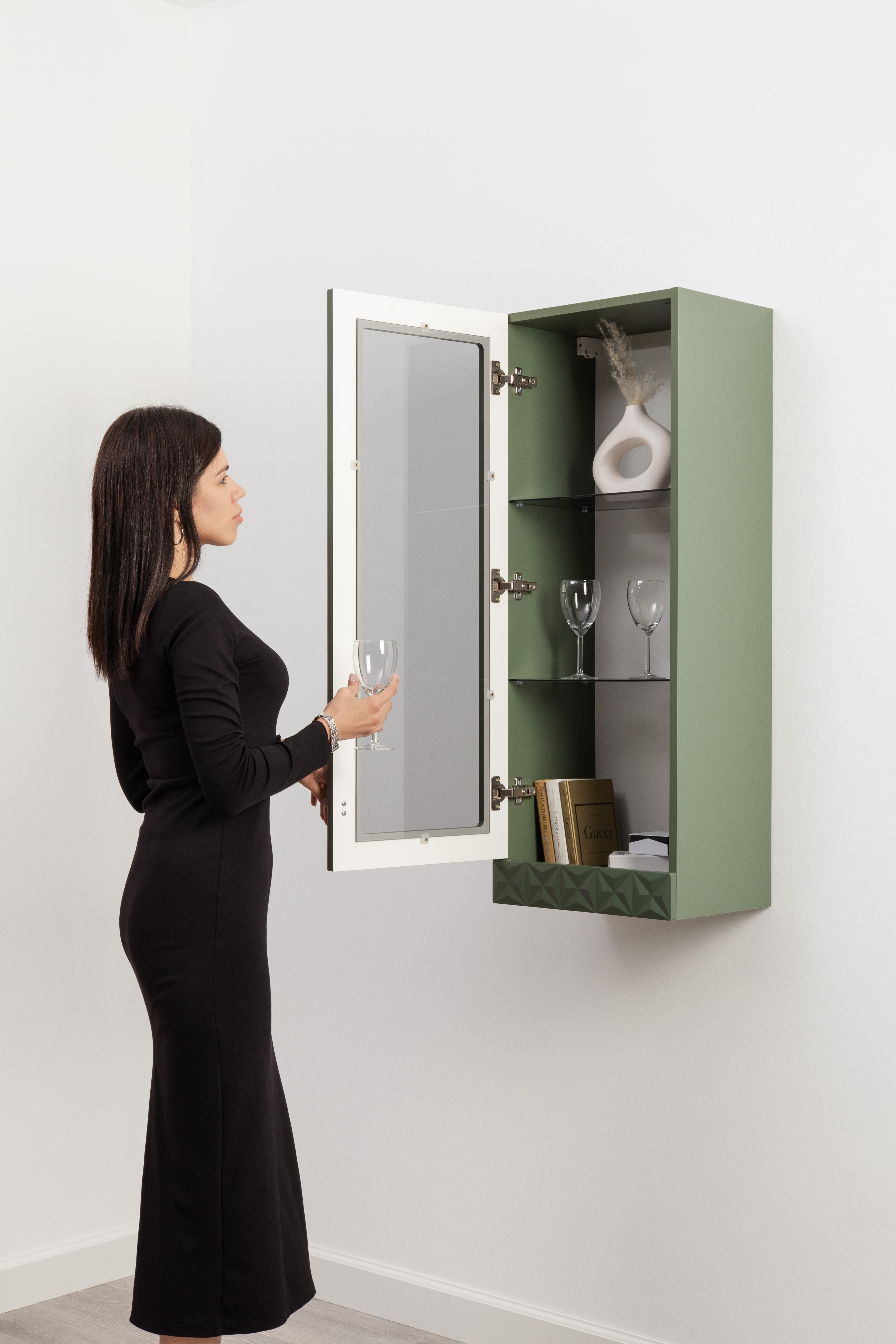 В коллекции представлены три типа витрин с тонированным закалённым стеклом, которые придают пространству лёгкость и свет. «Марион» — идеальное сочетание традиций и актуального дизайна в каждой детали.