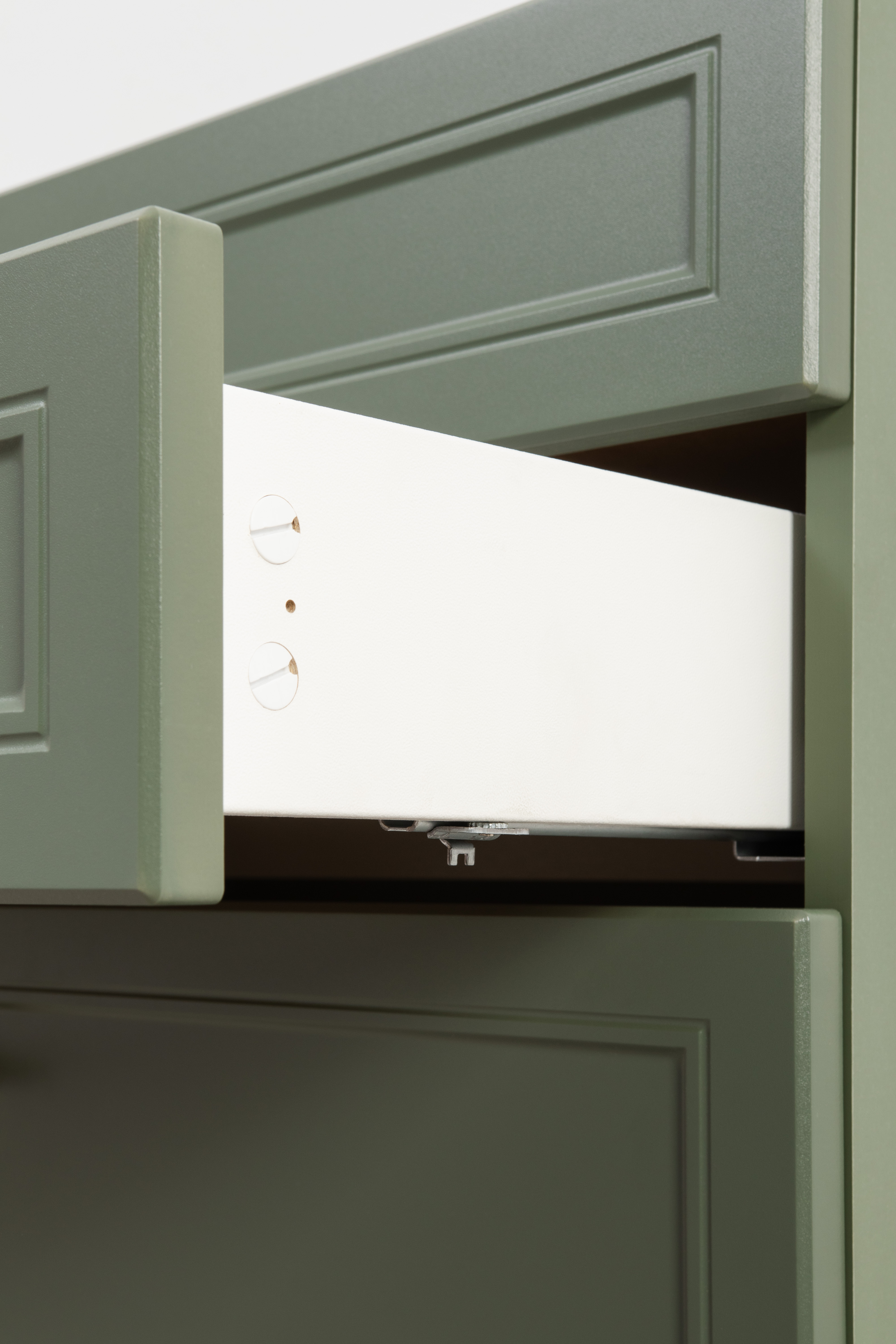 Комод Марион 16.249 дымчатый зеленый K521, олива шагрень AG 1050 ПВХ, белый PE шагрень
