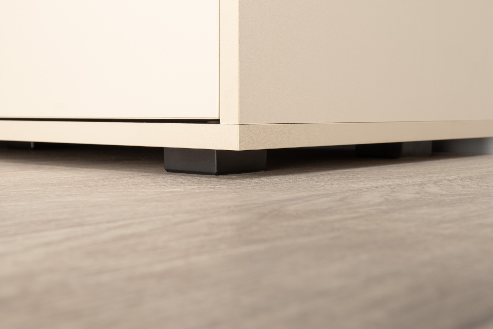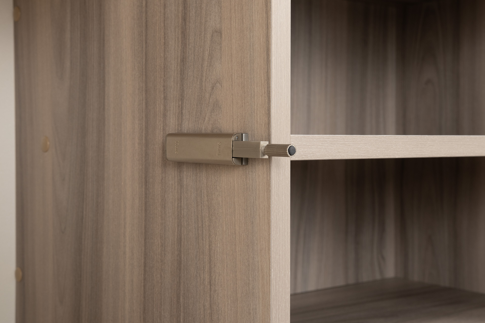 Благодаря нейтральному светлому оттенку и универсальности декора модули можно разместить в спальне, гостиной, прихожей.