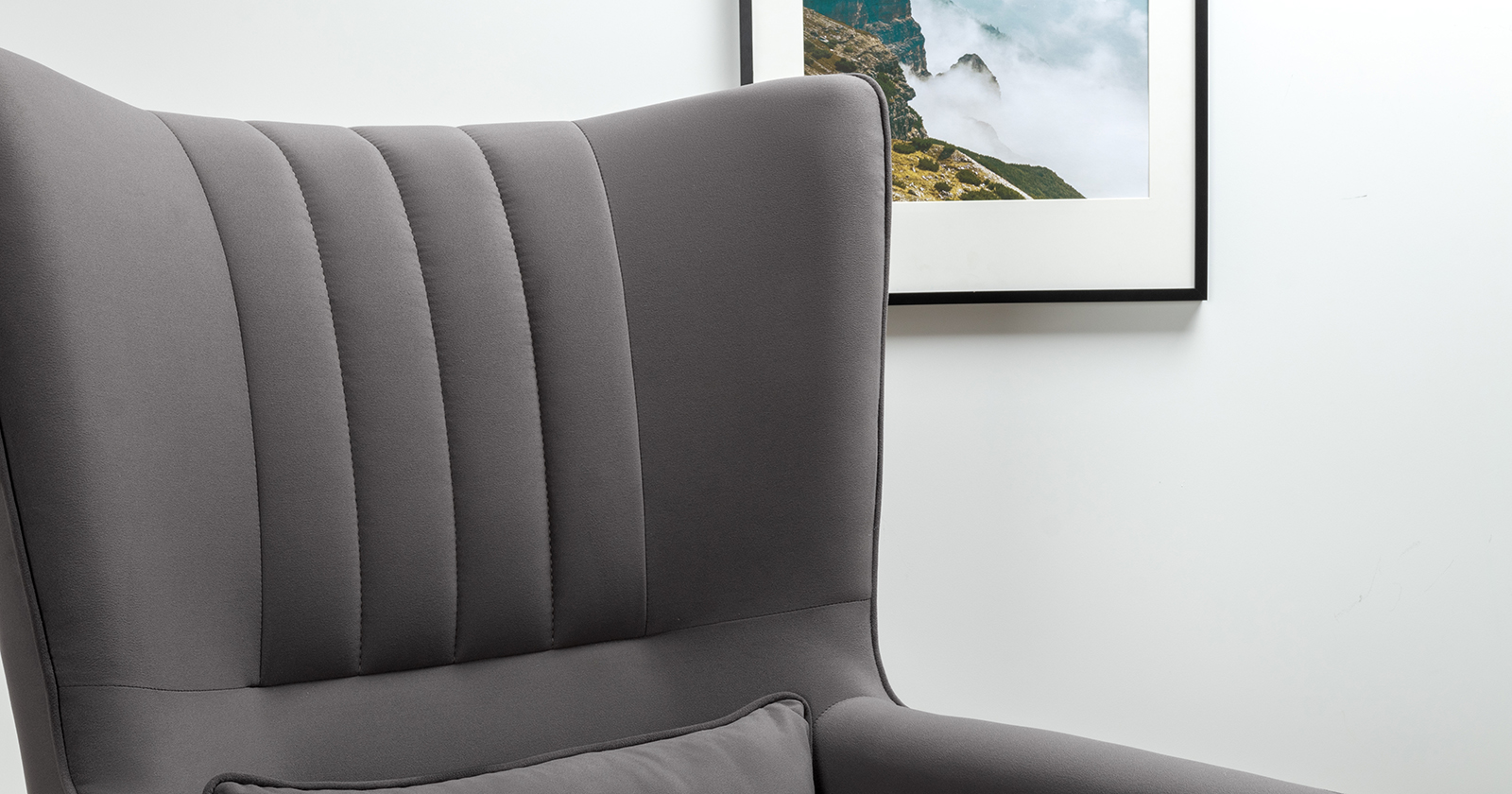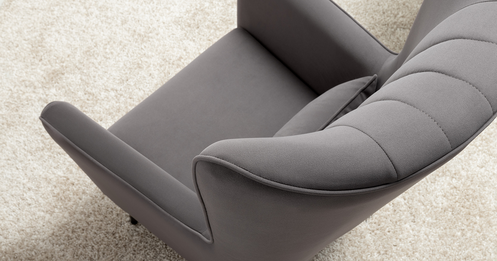 Вертикальная объемная стежка в средней части спинки; кант на спинке, подлокотниках и декоративной подушке