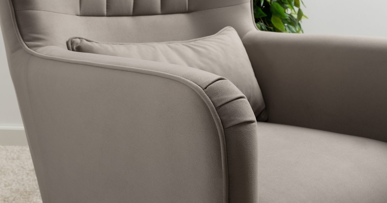 Вертикальная объемная стежка в средней части спинки; кант на спинке, подлокотниках и декоративной подушке