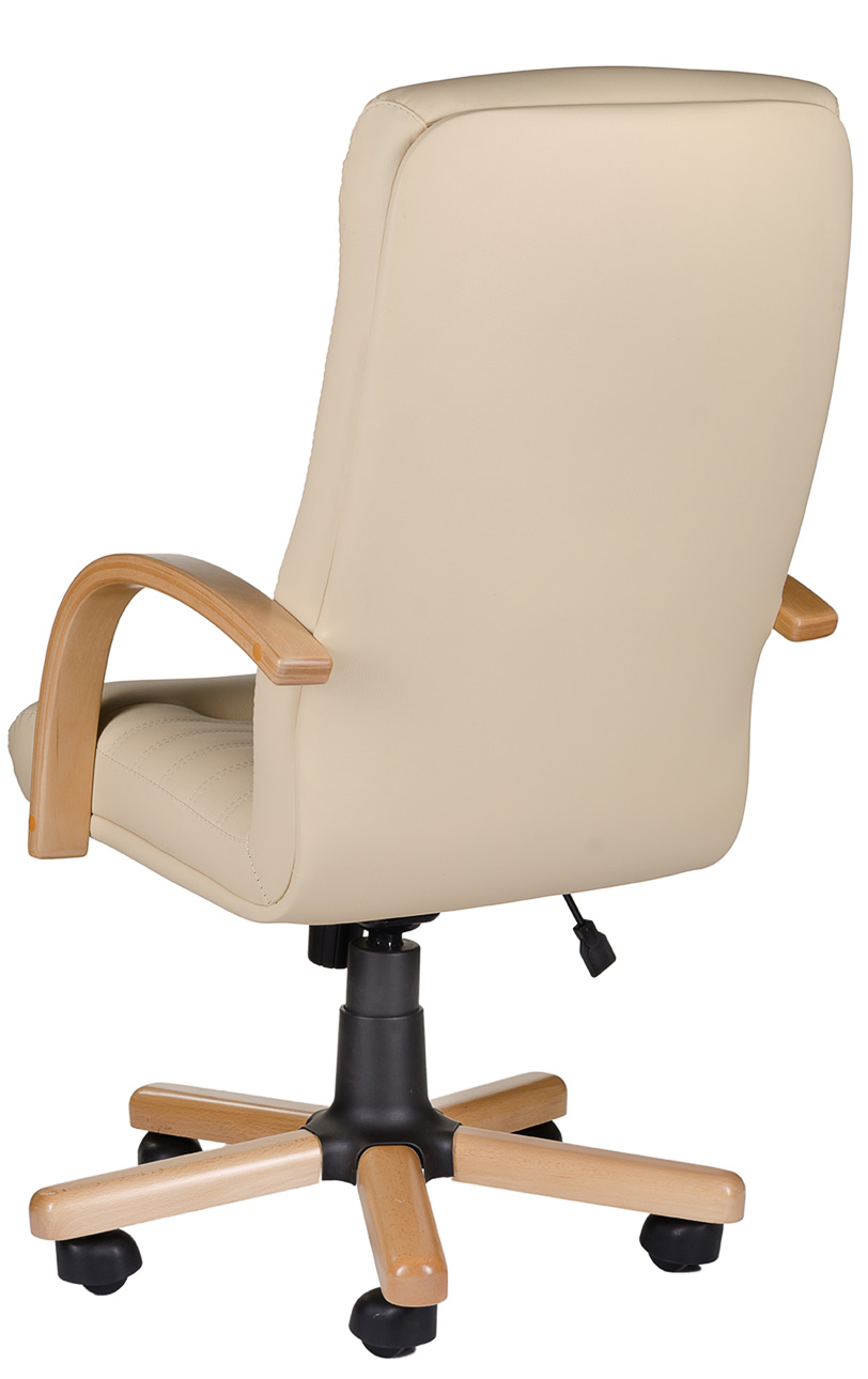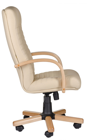 На фото светло-бежевая кожа с комплектацией крестовины и подлокотников в хроме.