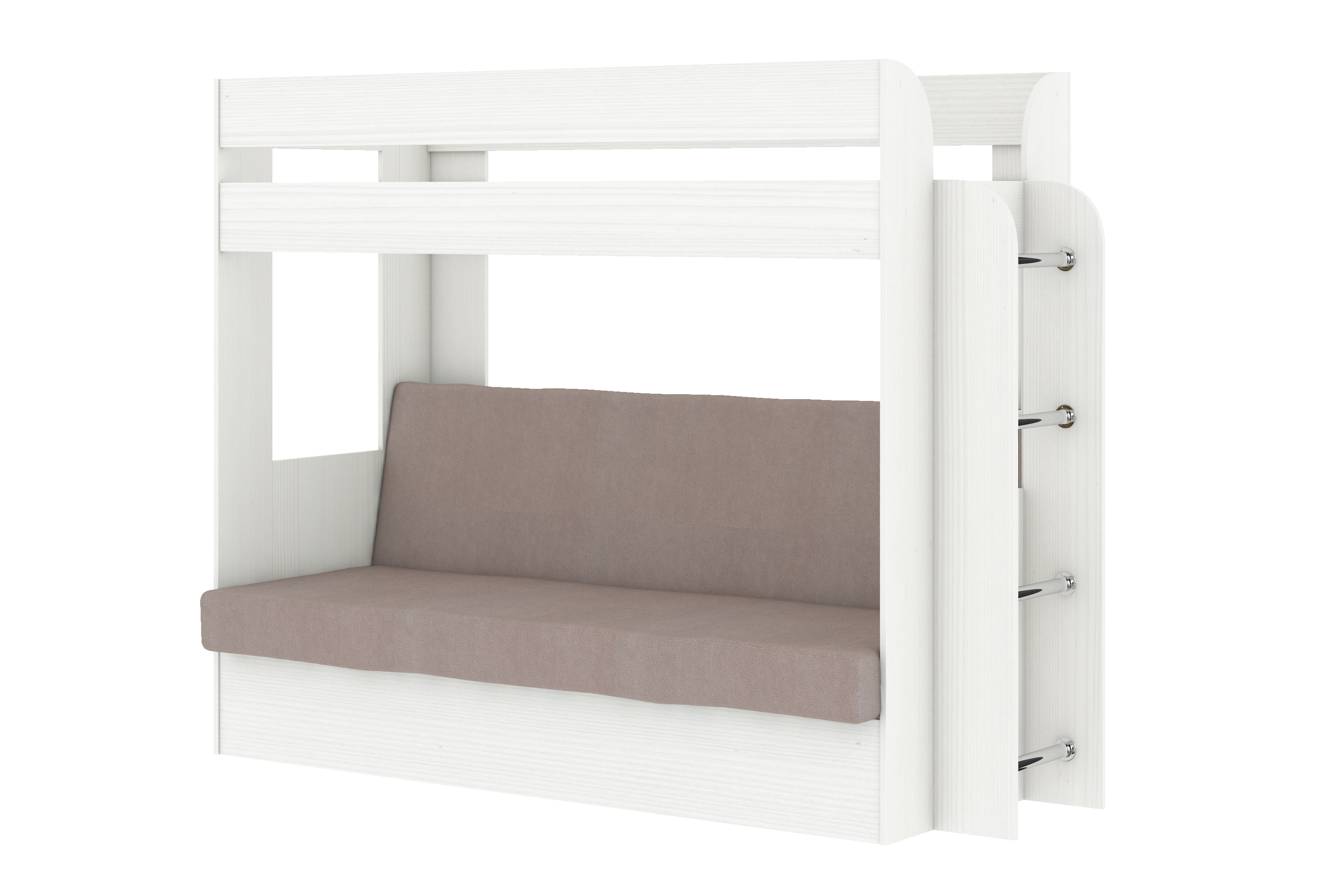 Двухъярусная кровать с диваном на первом уровне очень функциональна, удобно разместится в любом интерьере.