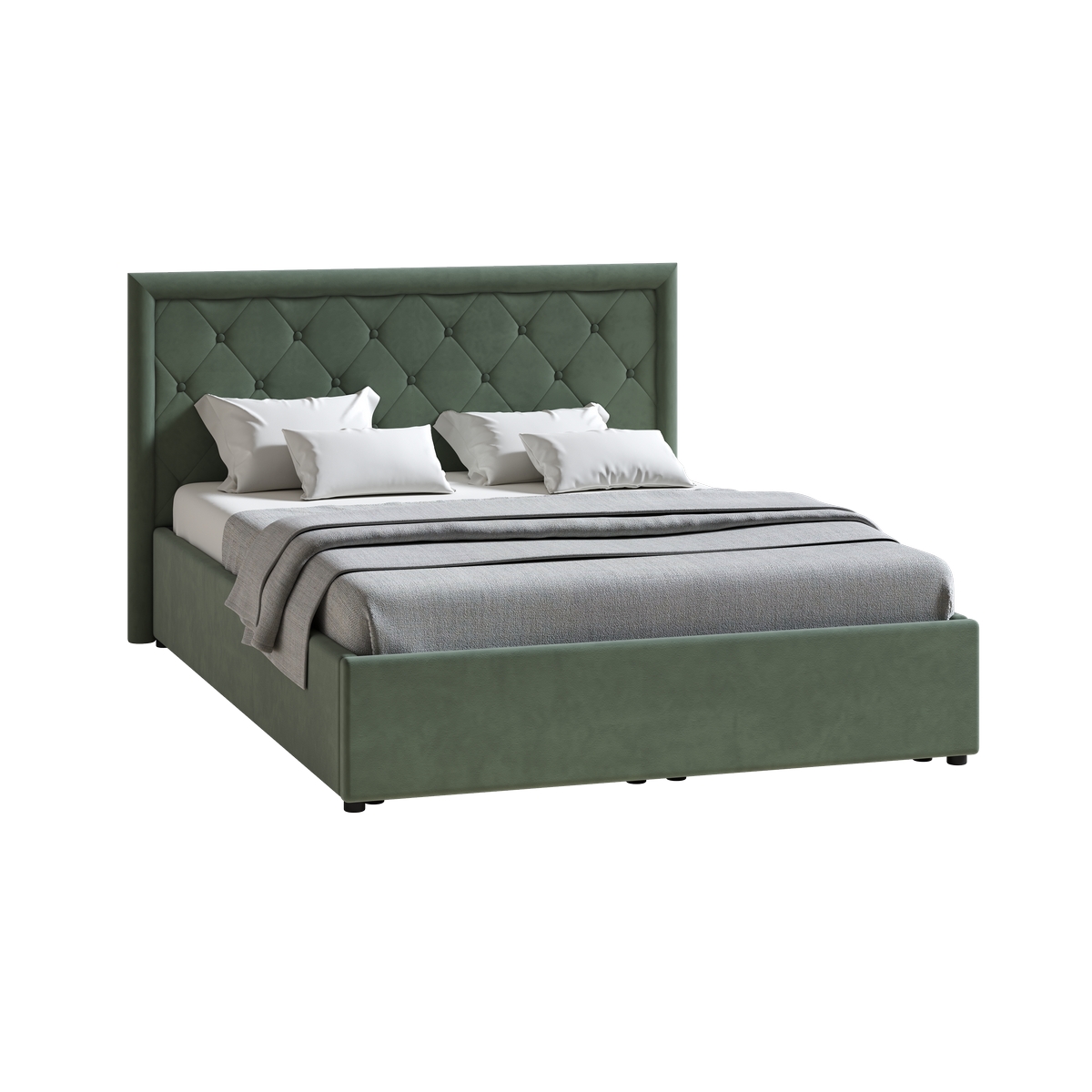 Кровать Марион 140 велюр OCEAN 012 темно-зеленый с ортопедическим основанием и подъемным механизмом (спальное место 140 х 200)