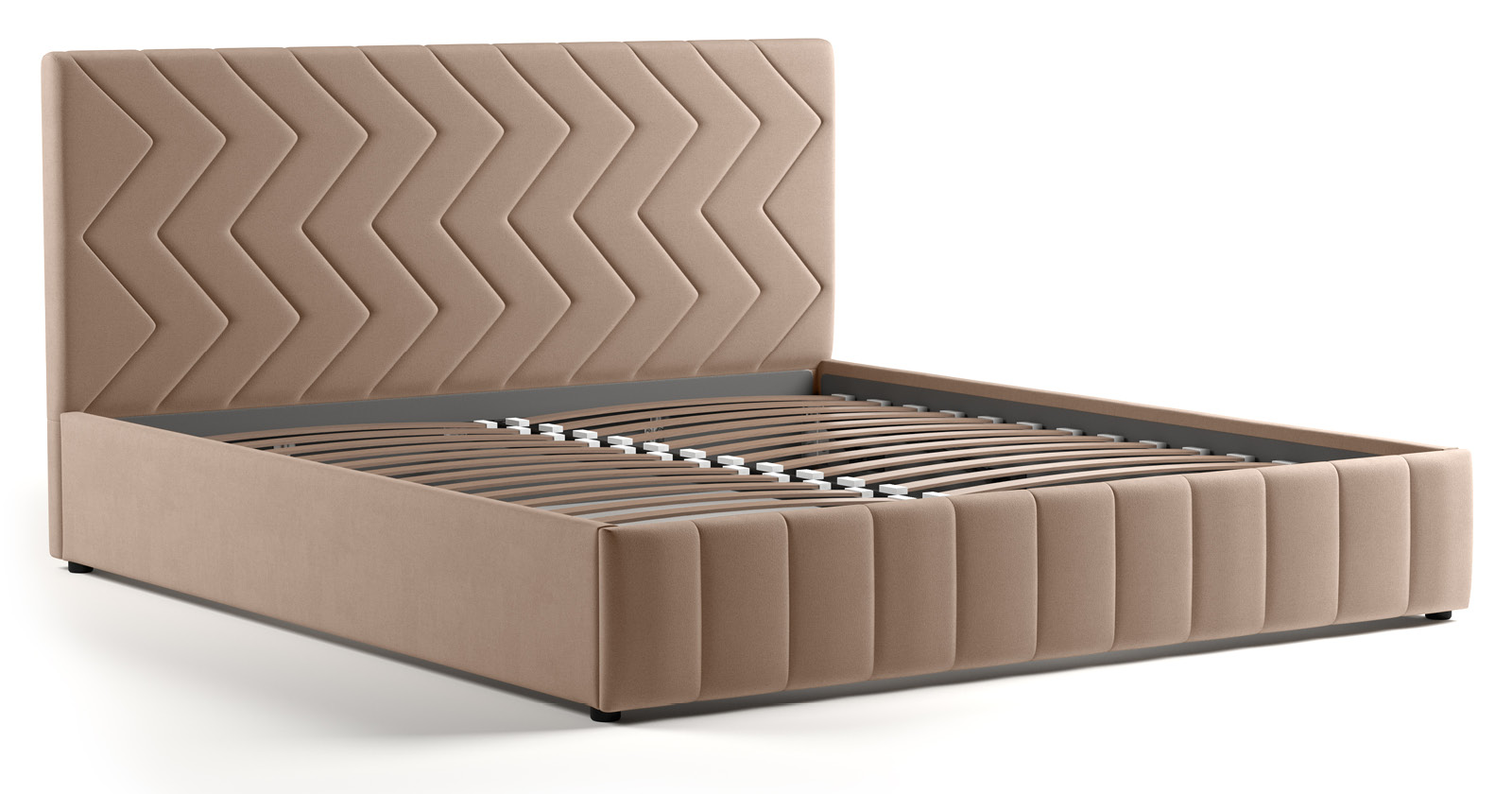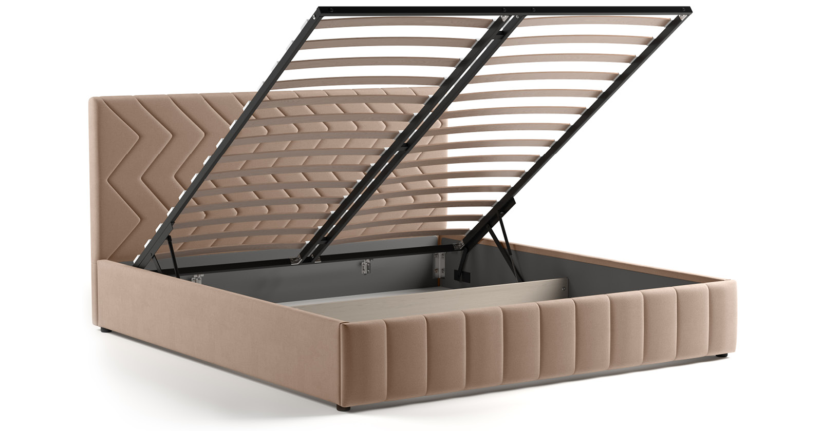 Кровать Милана 160 велюр бежевый кофейный с ортопедическим основанием и подъемным механизмом