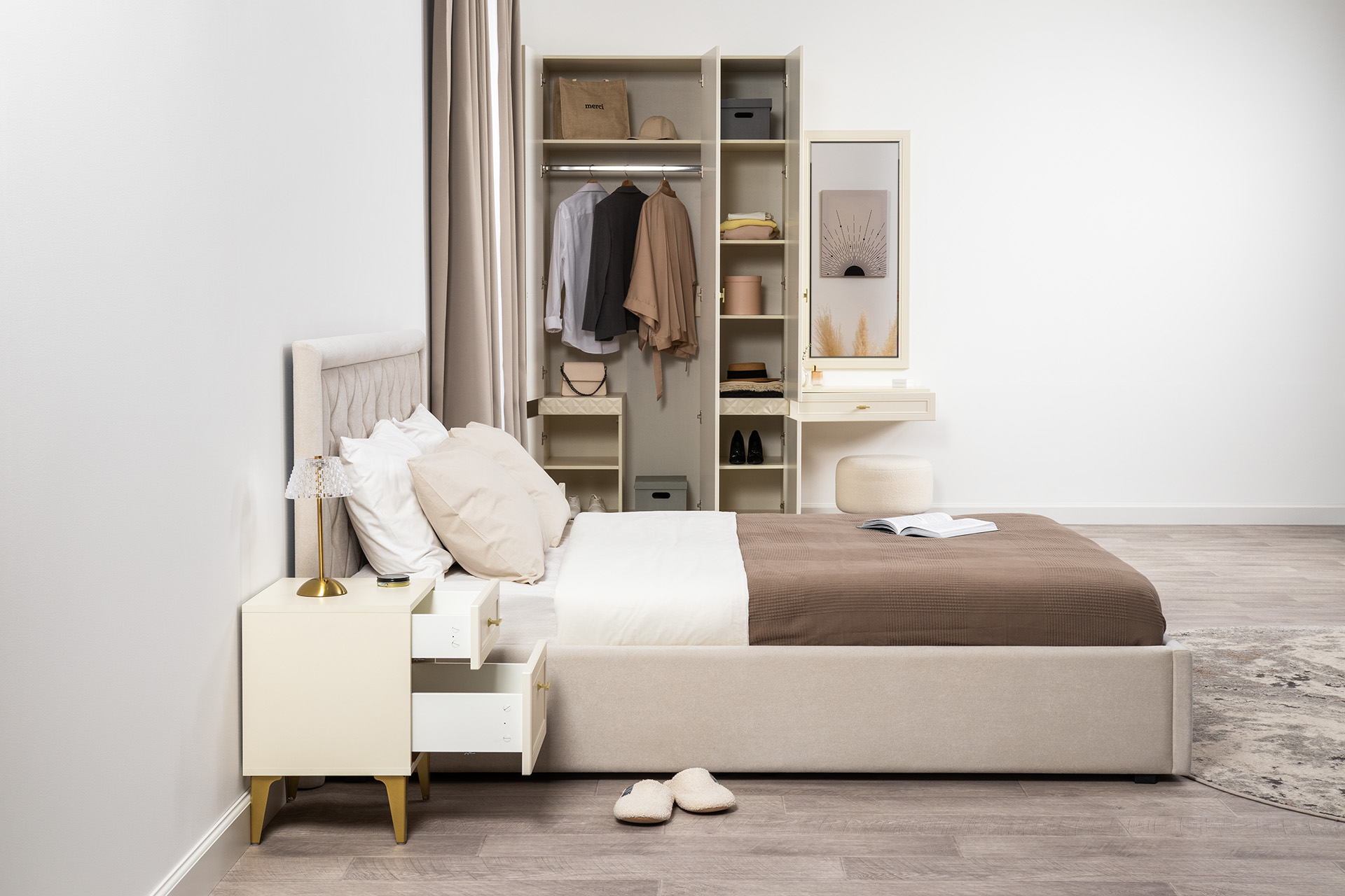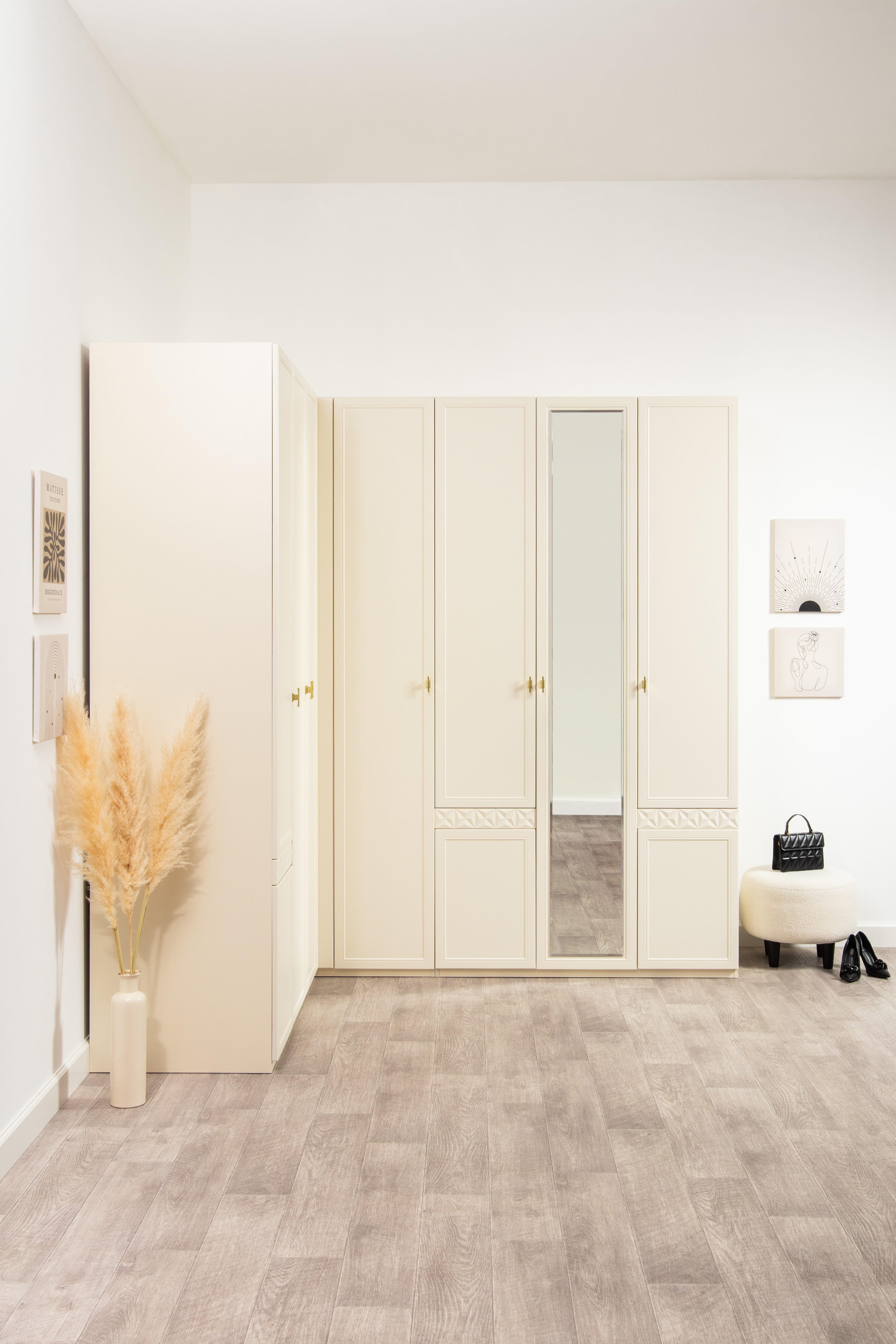 Шкаф для одежды Марион 16.340.03 слоновая кость С341 PE, слоновая кость 6898 ПВХ (собирается на любую сторону)