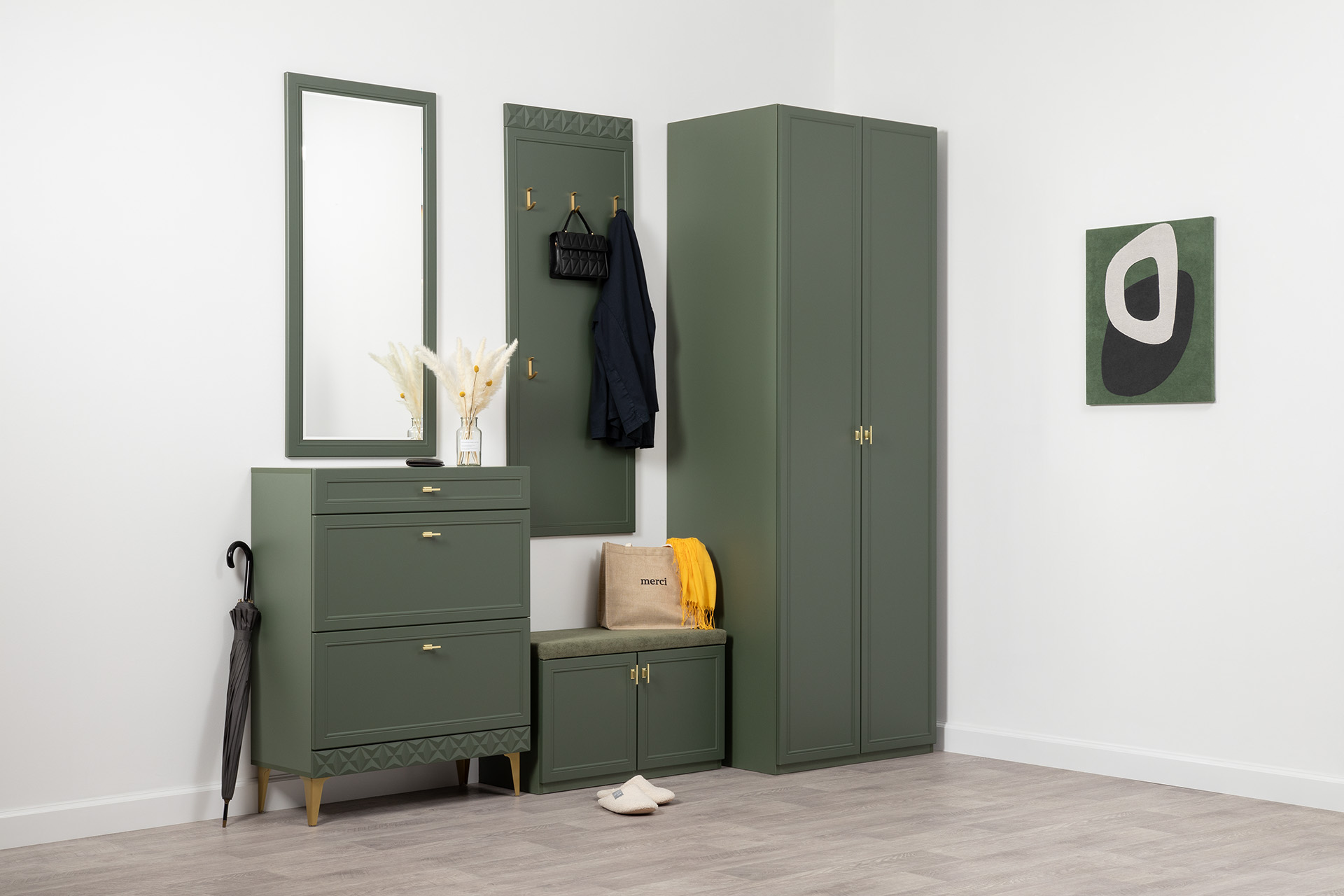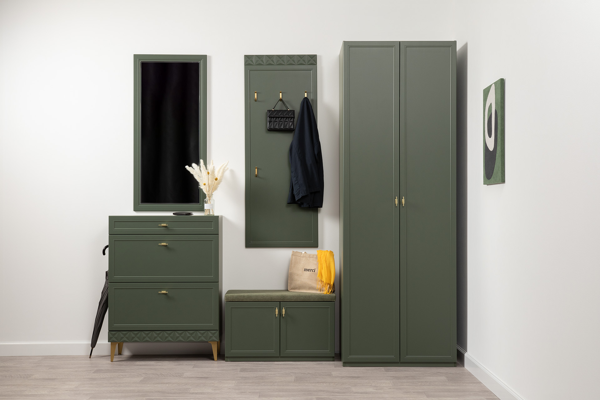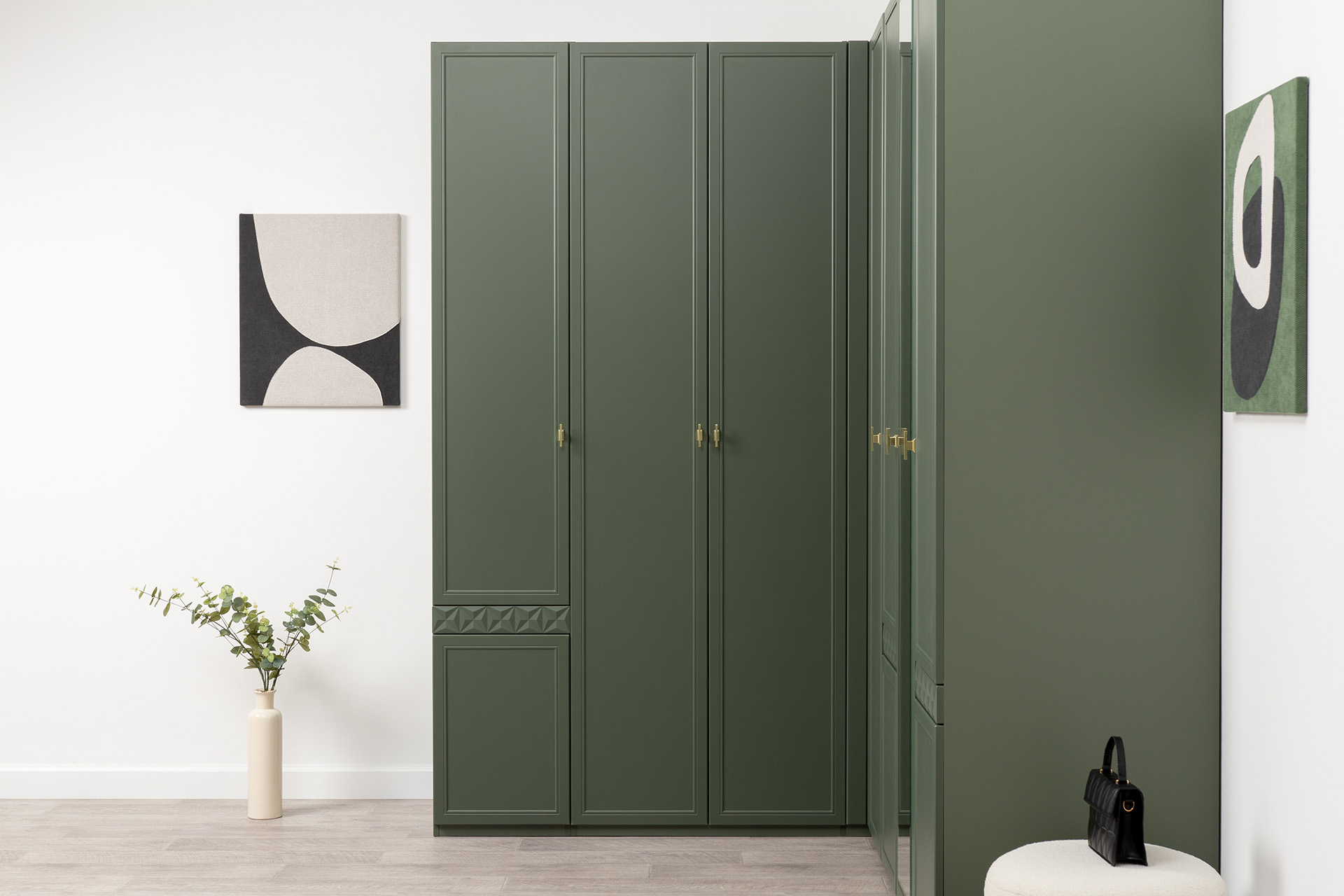 Шкаф двустворчатый Марион 16.340.02 дымчатый зеленый K521, олива шагрень AG 1050 ПВХ