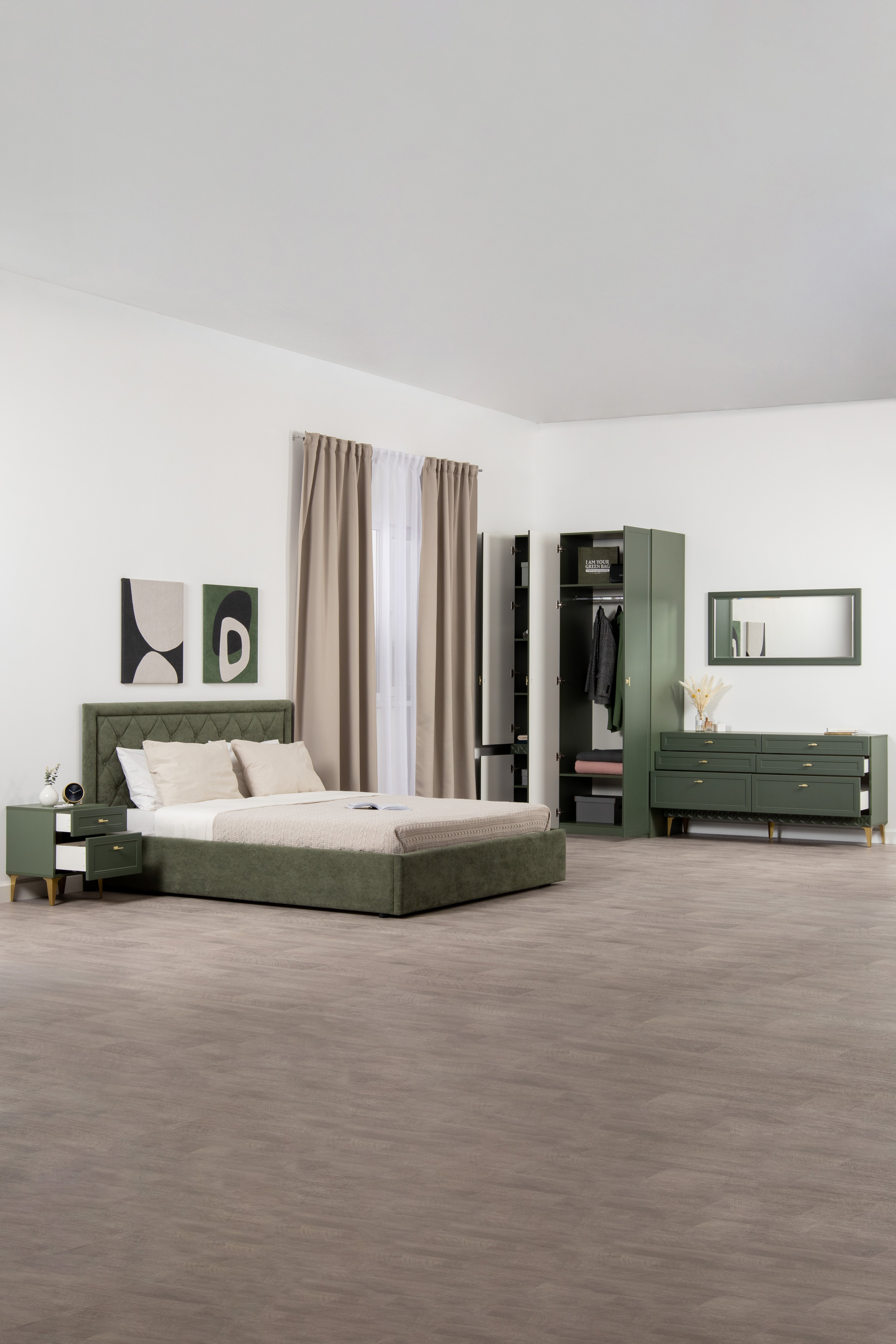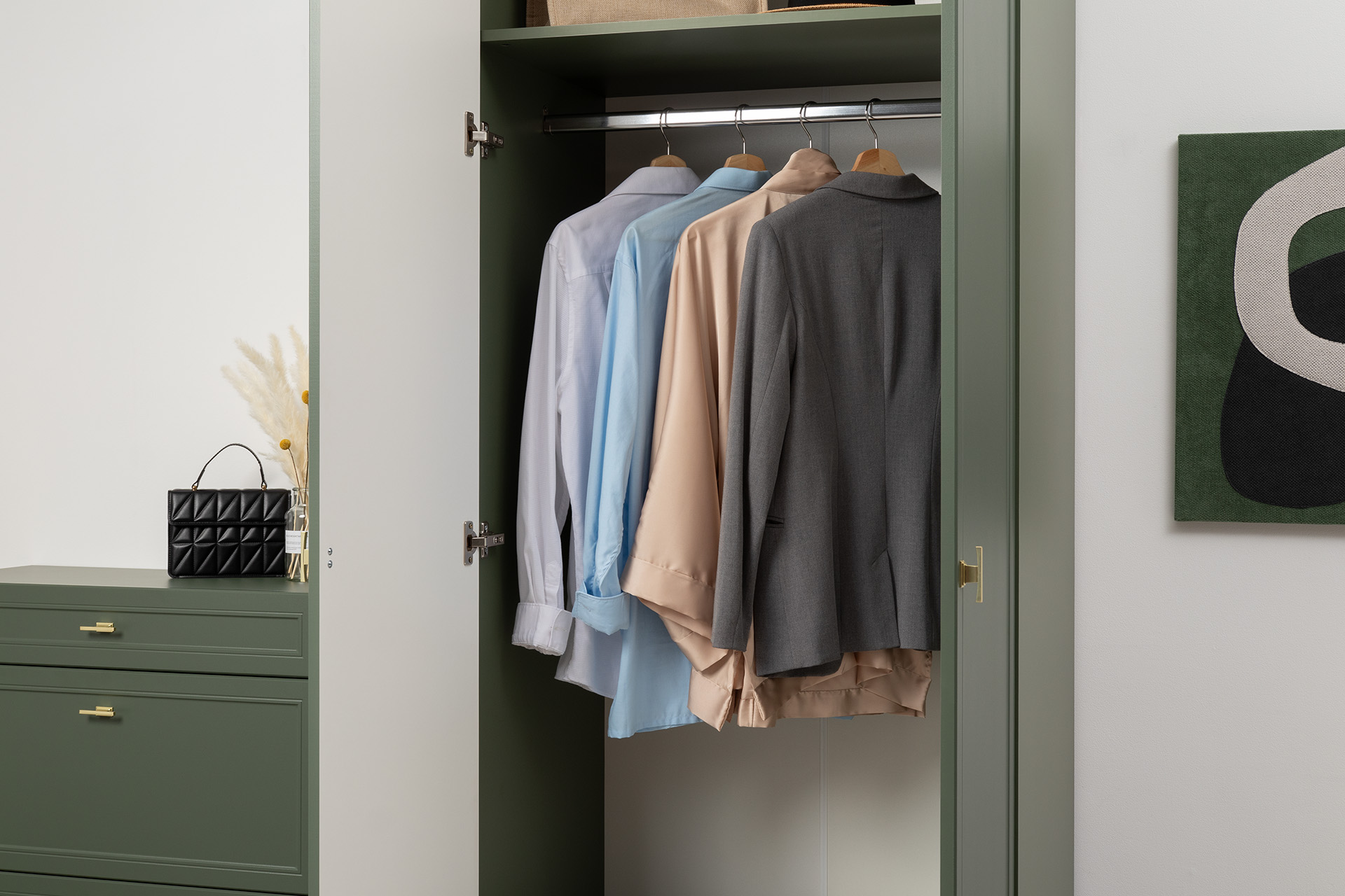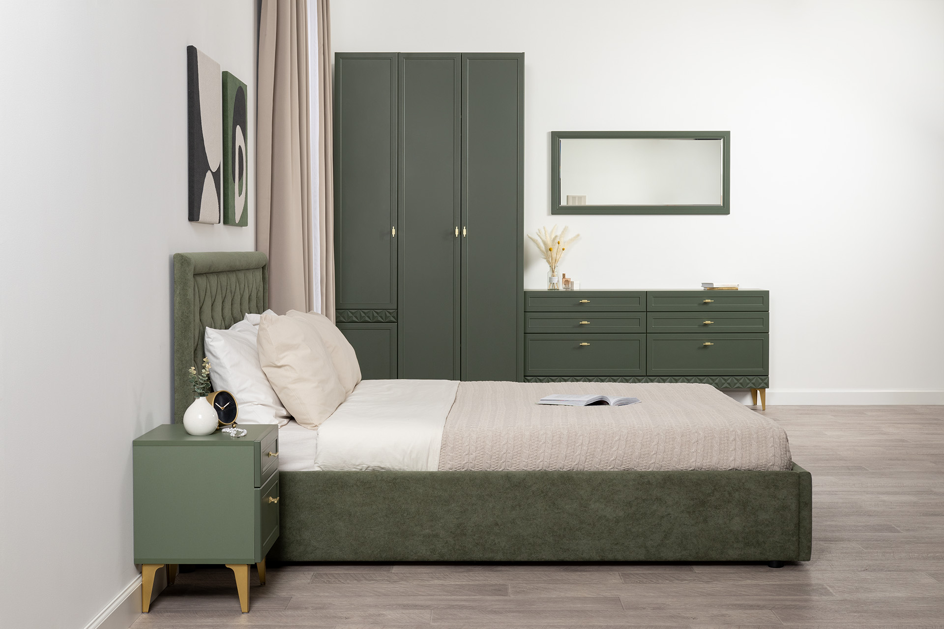 Шкаф двустворчатый Марион 16.340.02 дымчатый зеленый K521, олива шагрень AG 1050 ПВХ