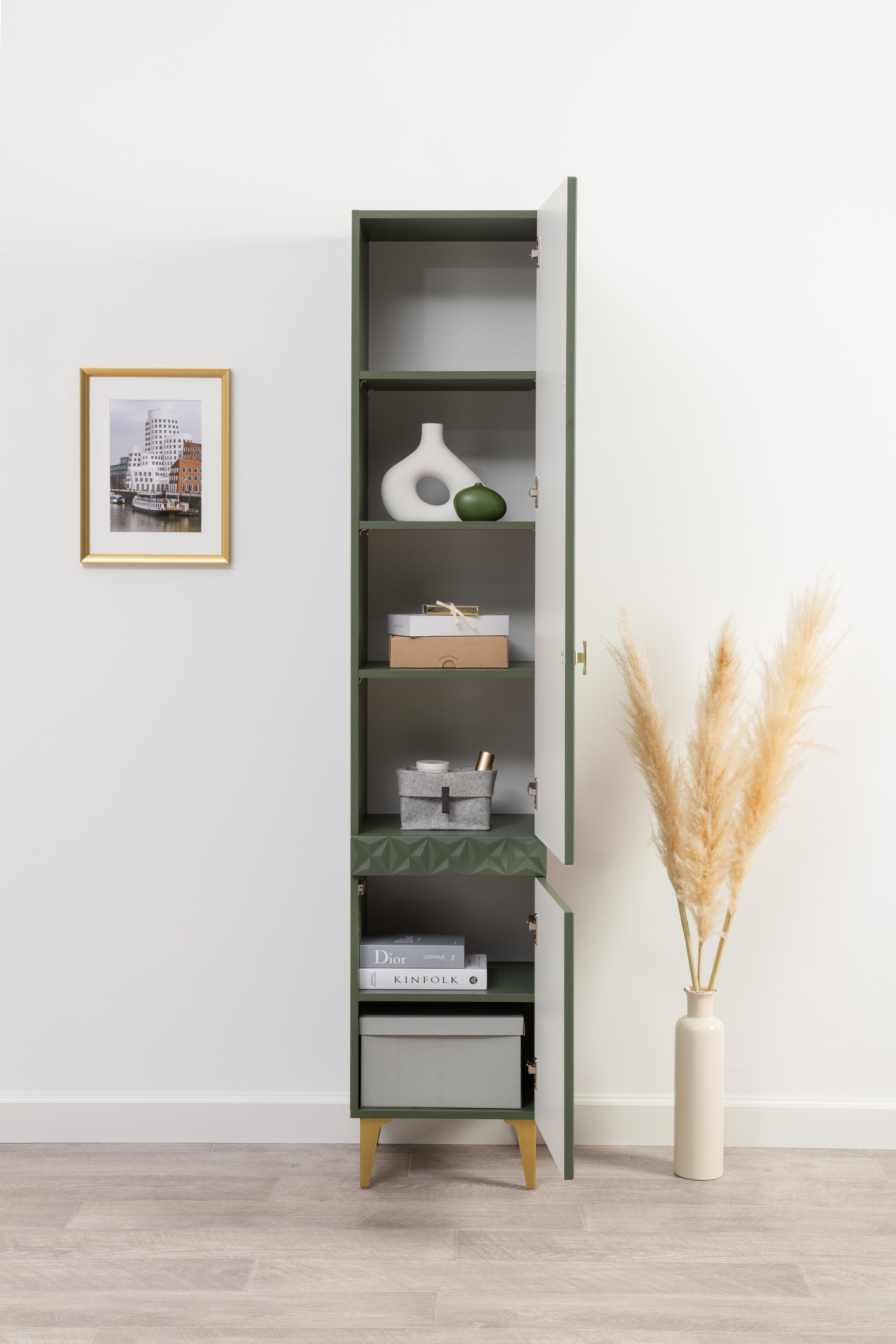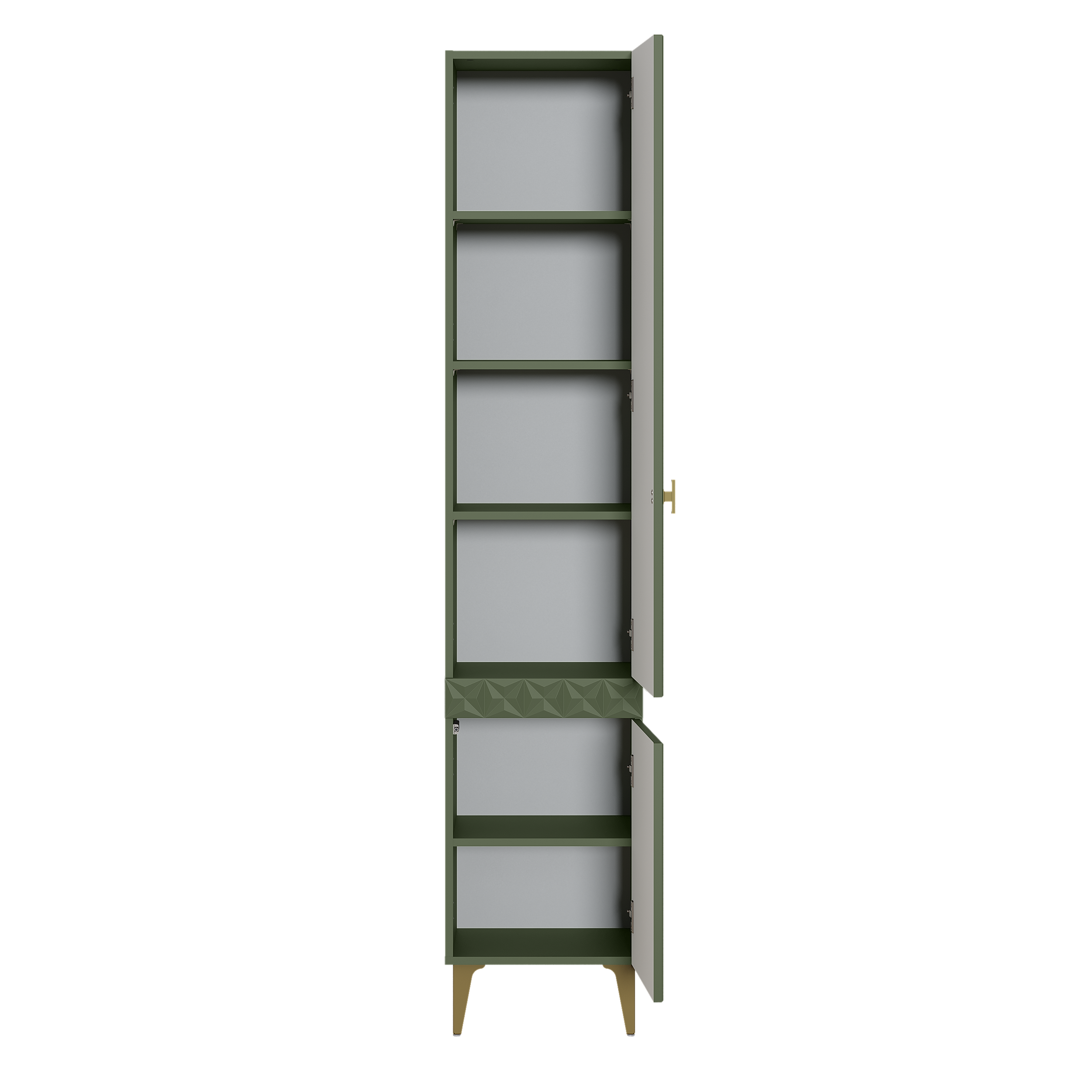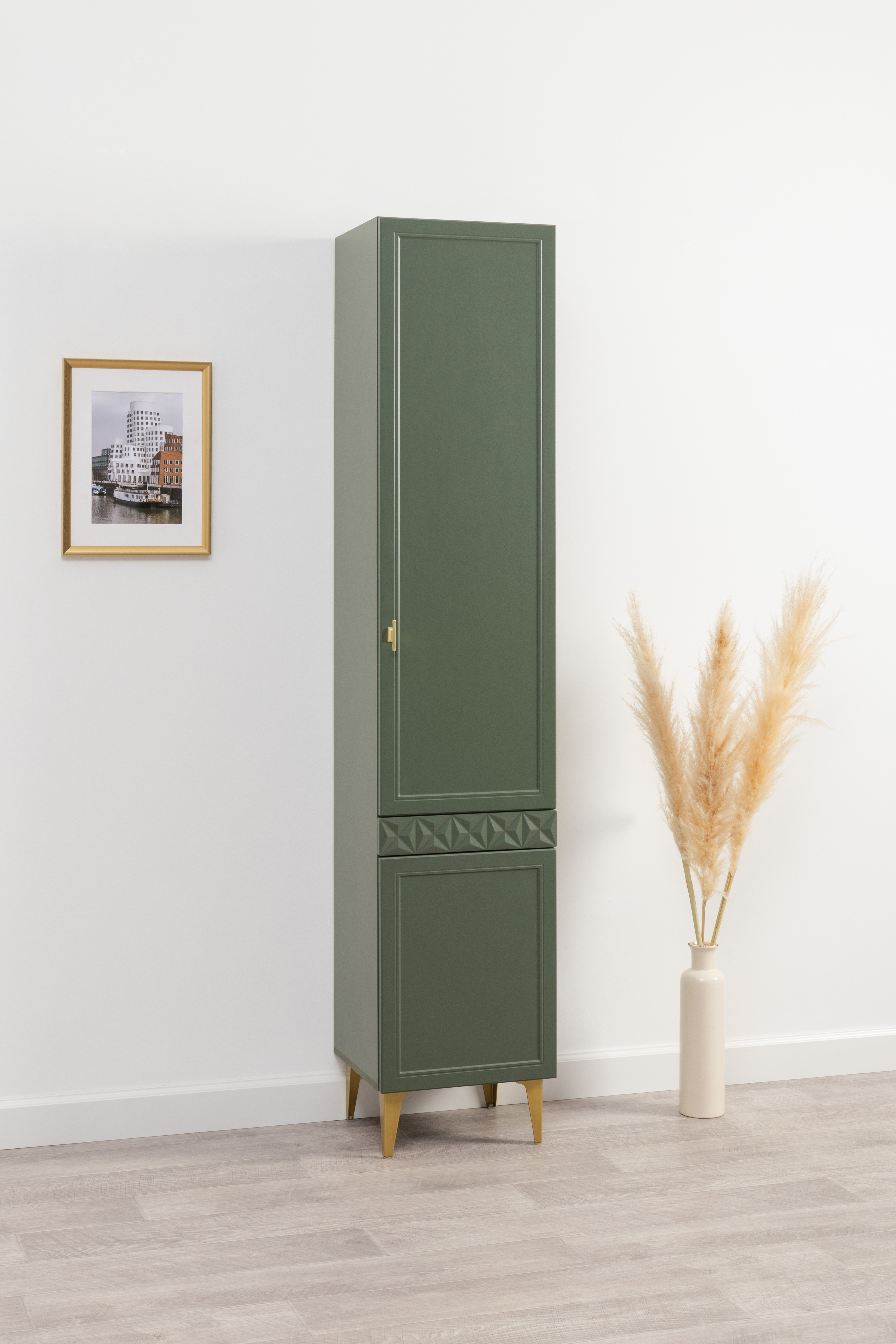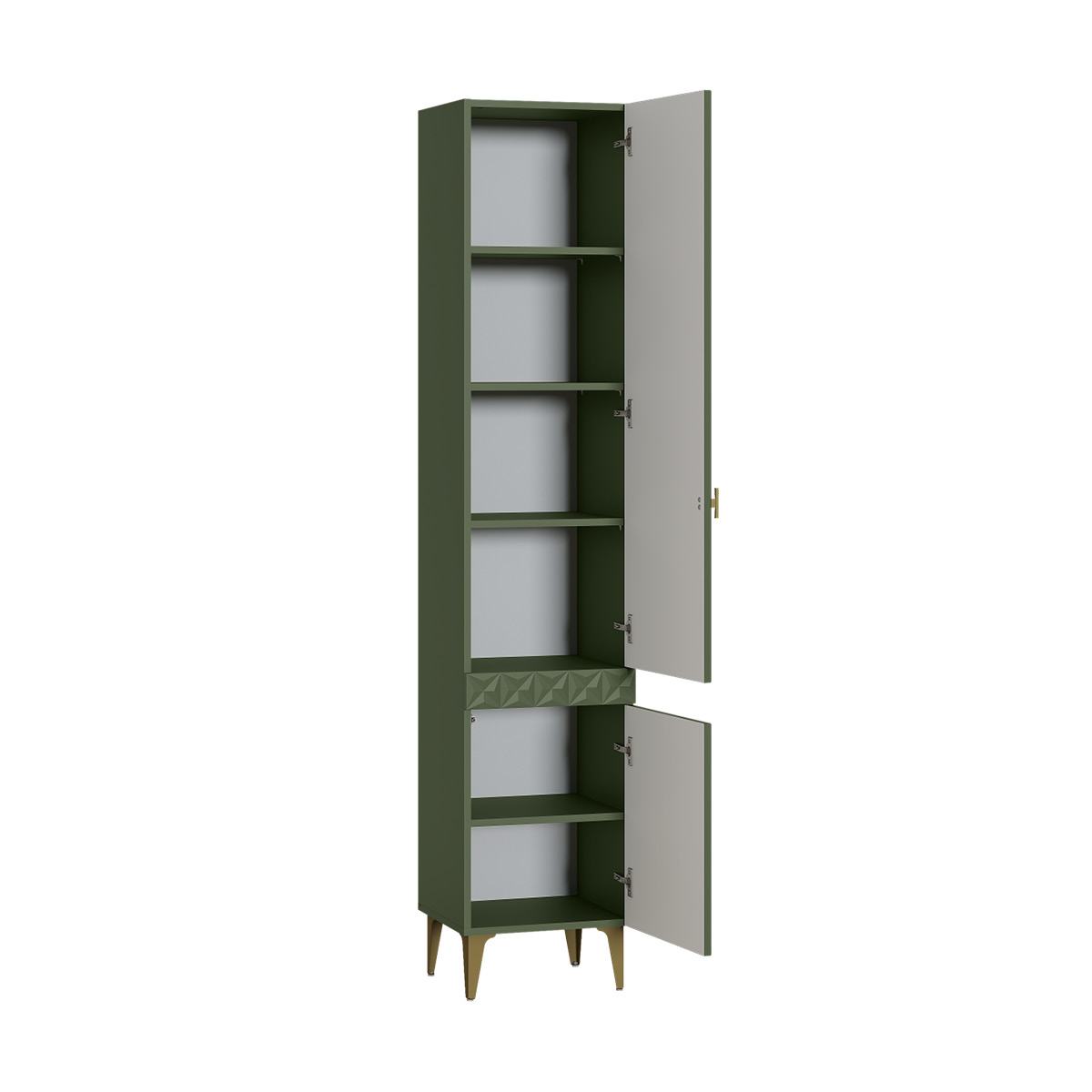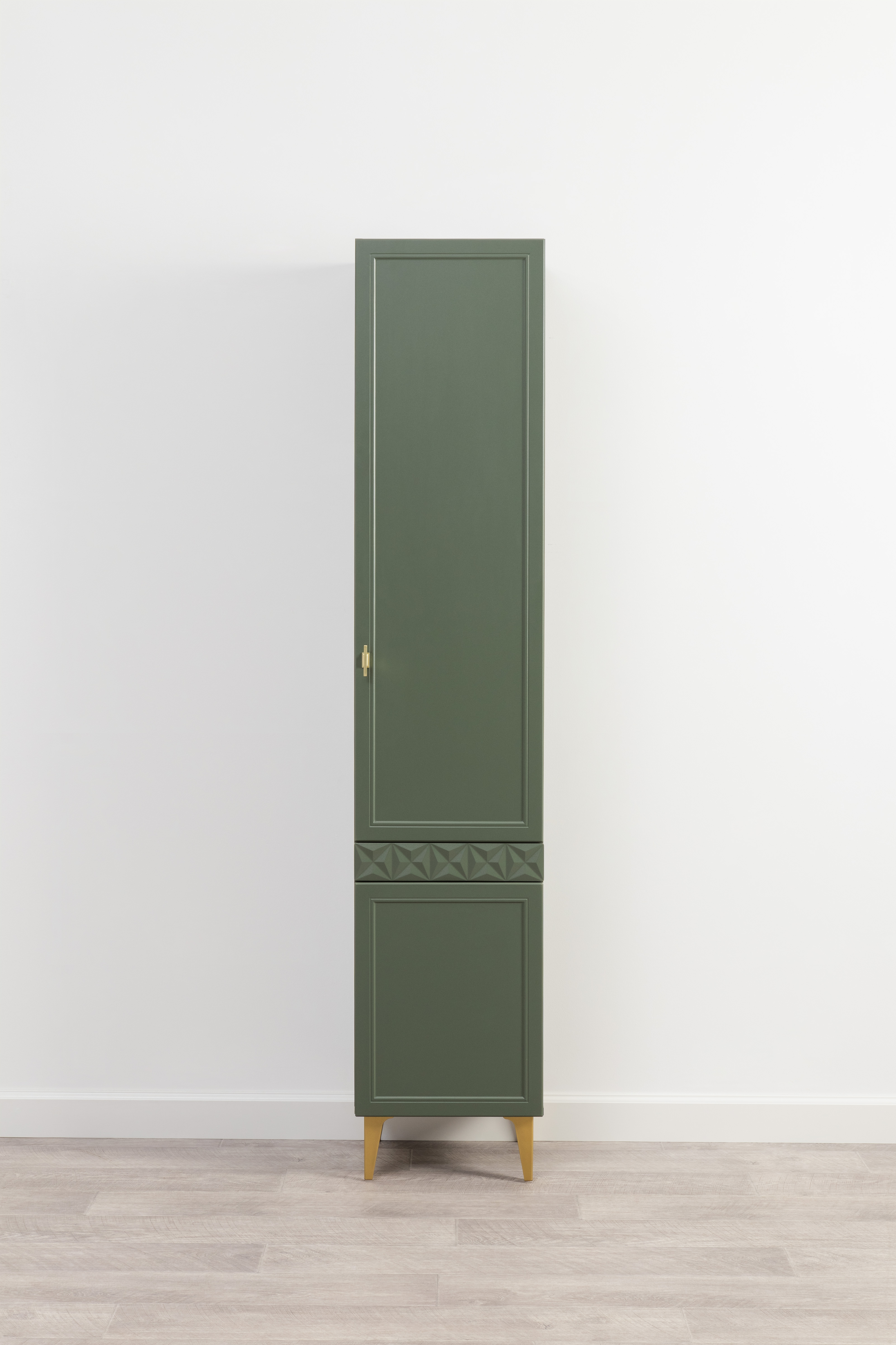 Шкаф-пенал Марион 16.333.01 дымчатый зеленый K521, олива шагрень AG 1050 ПВХ (собирается на любую сторону)